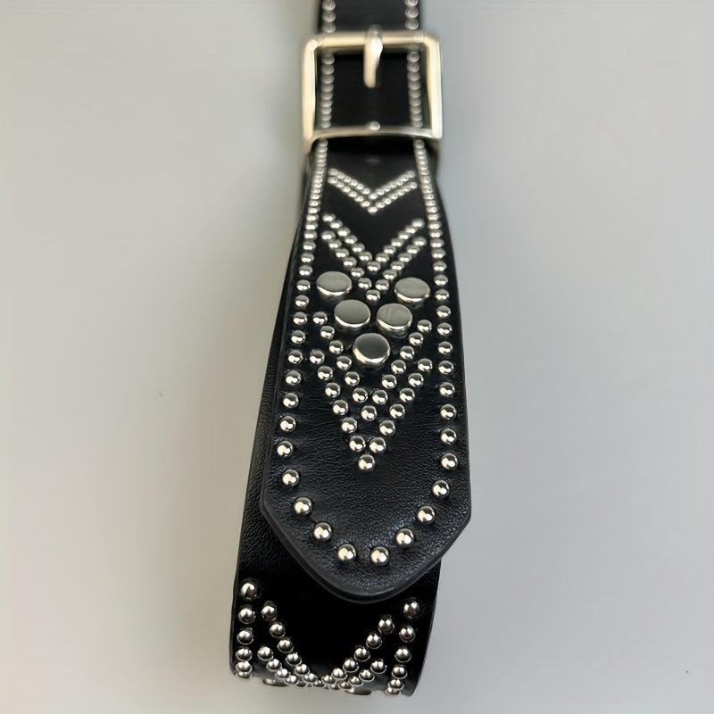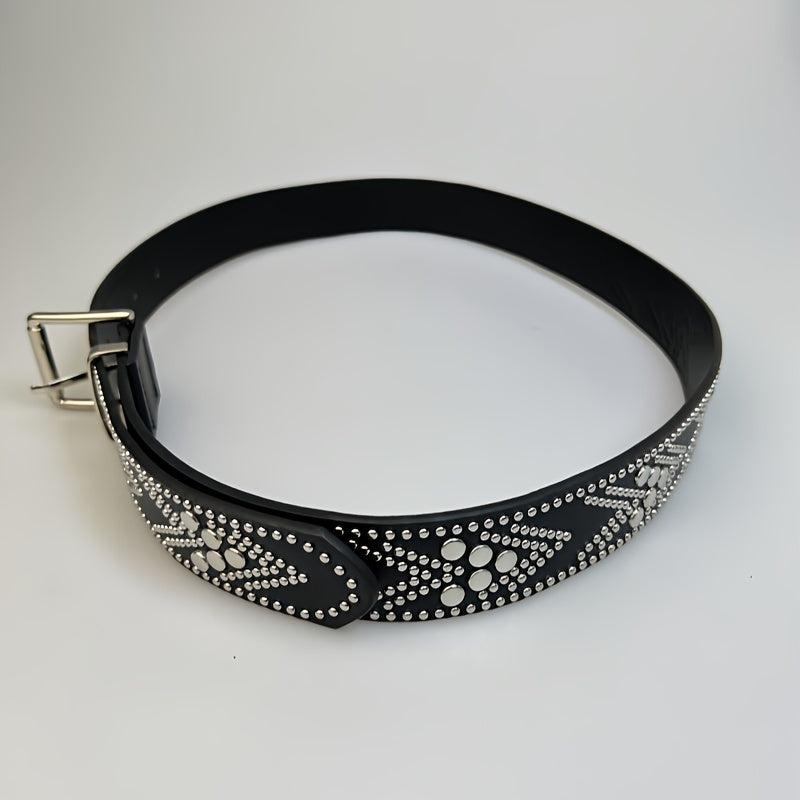 This studded belt is the perfect accessory for beach evenings, dates, casual outings, festivals, weddings, parties, college, and everyday commutes. Embrace the Y2Kins style with this versatile belt.
