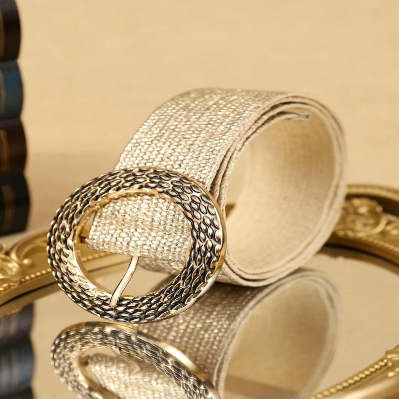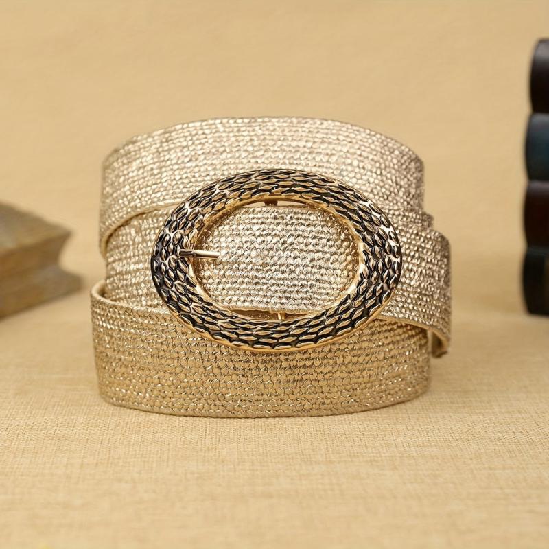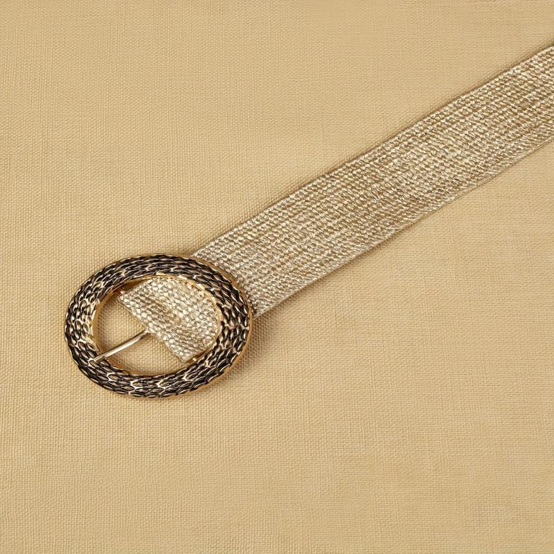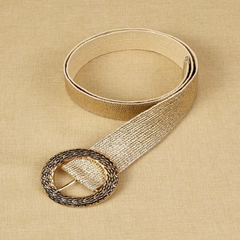 Elevate your look with this golden braided belt featuring a stylish round buckle. Perfect for casual wear, weddings, parties, or any special occasion.