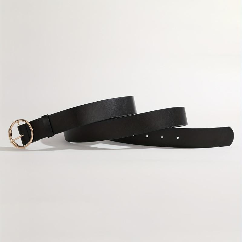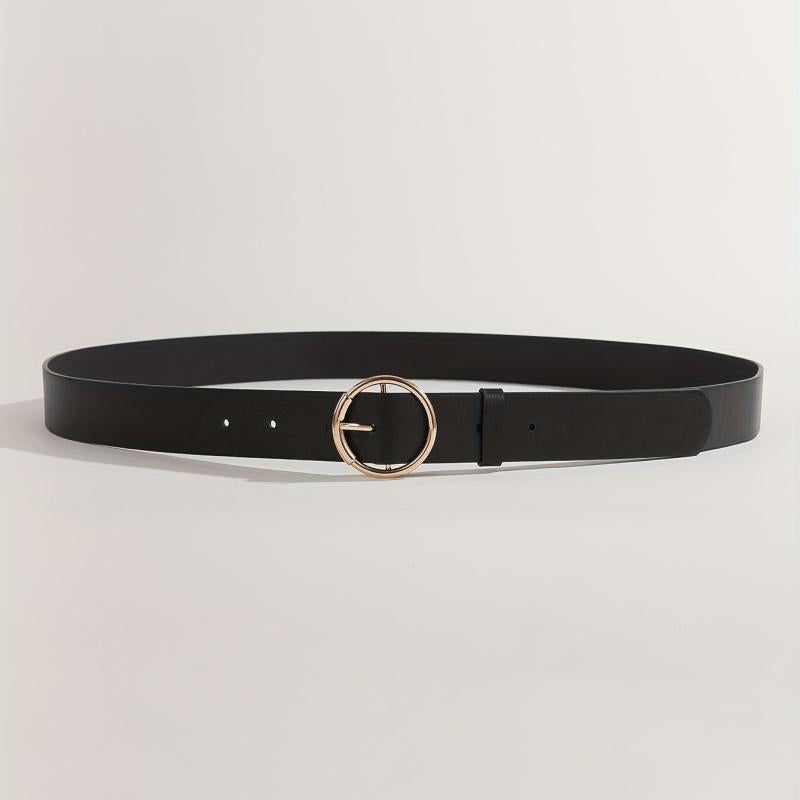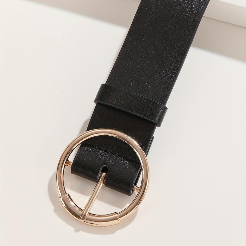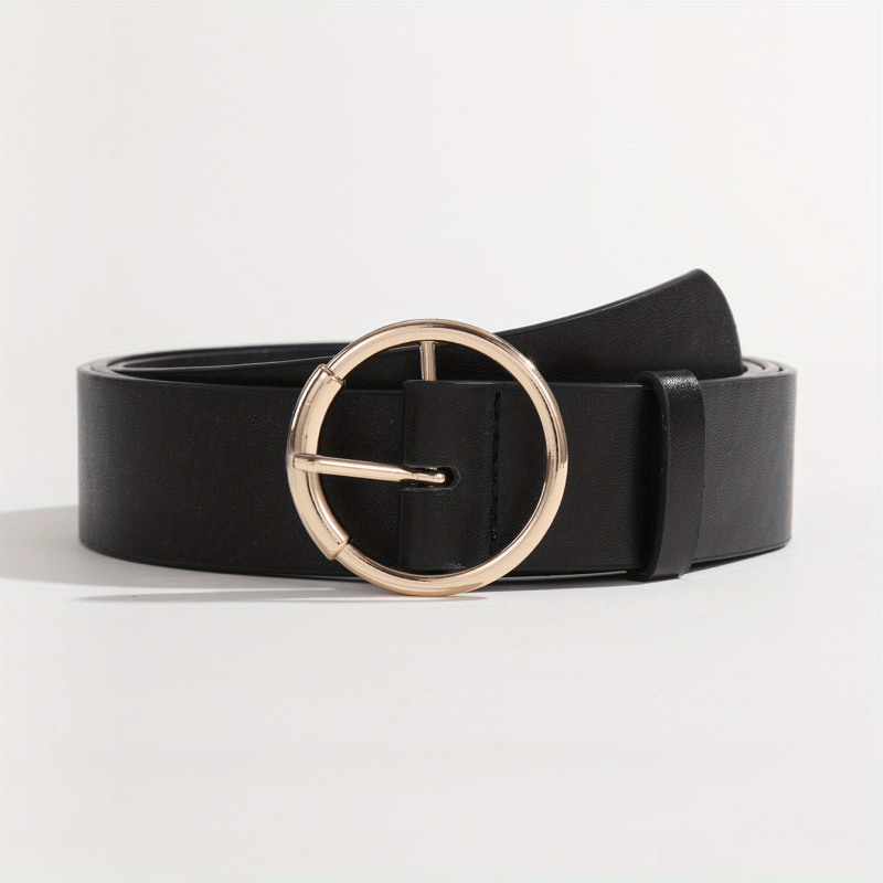 Add a touch of style to your outfits with this classic PU belt featuring a golden round pin buckle. Perfect for jeans, pants, or to accentuate your waistline in a casual or formal setting.