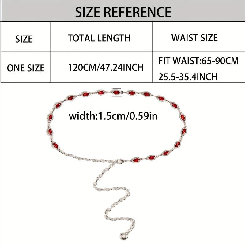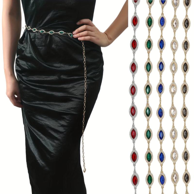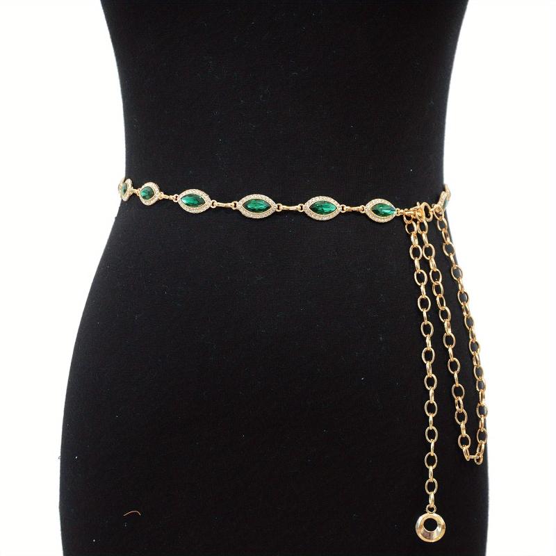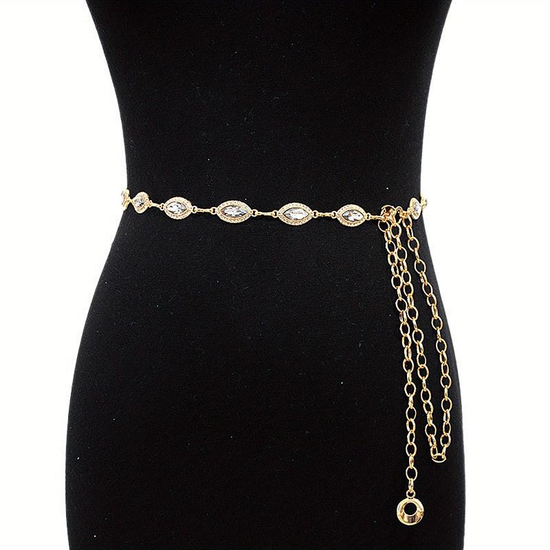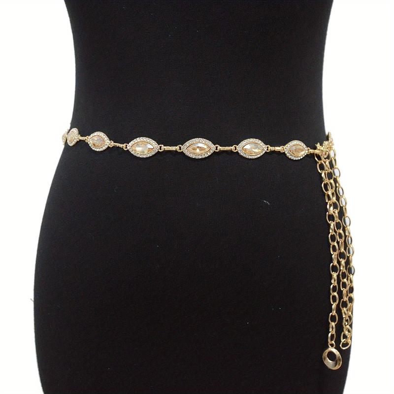 Elevate your style with this stunning golden waist chain featuring crystal rhinestone inlays. Perfect for adding a touch of glamour to any outfit.