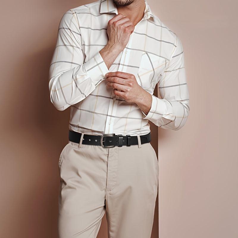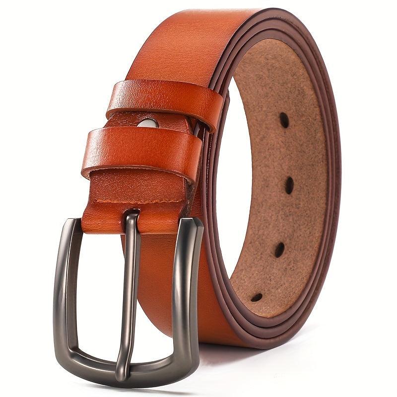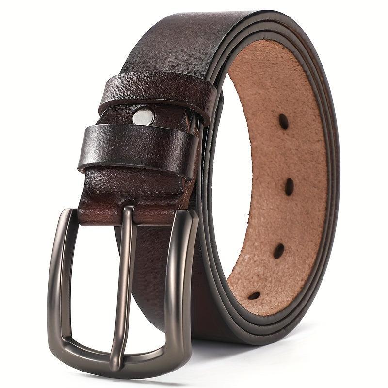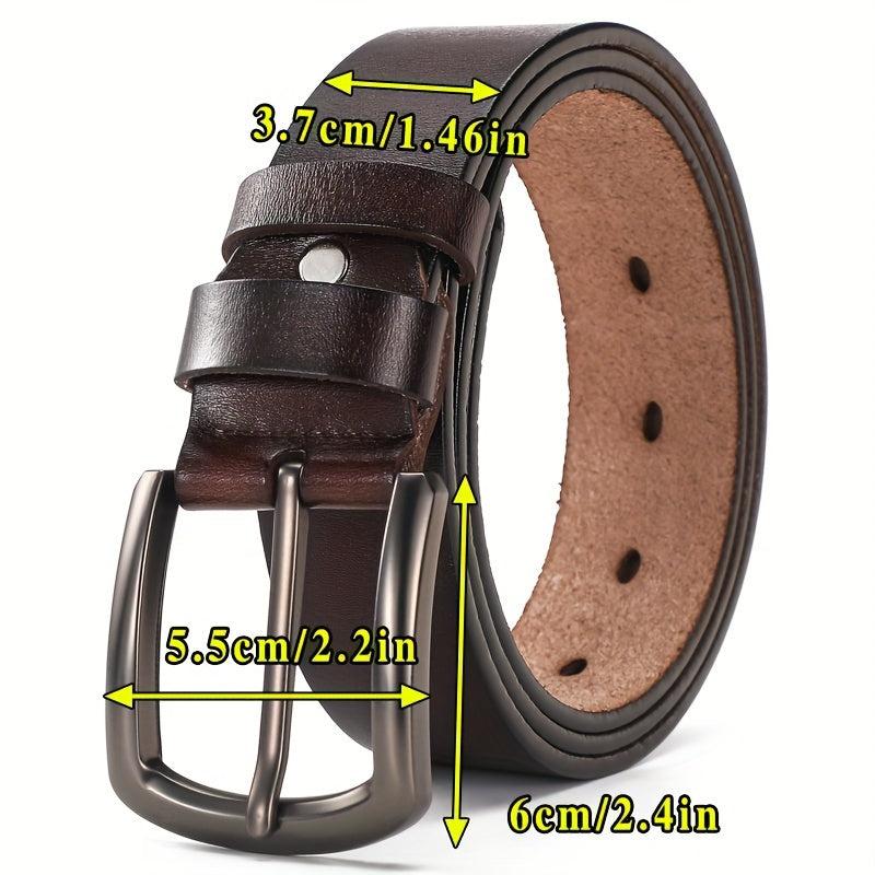 This high-quality leather belt is perfect for work, business, and sports. It features a retro design that is both stylish and durable. The belt can be adjusted to fit different waist sizes, making it versatile and practical.