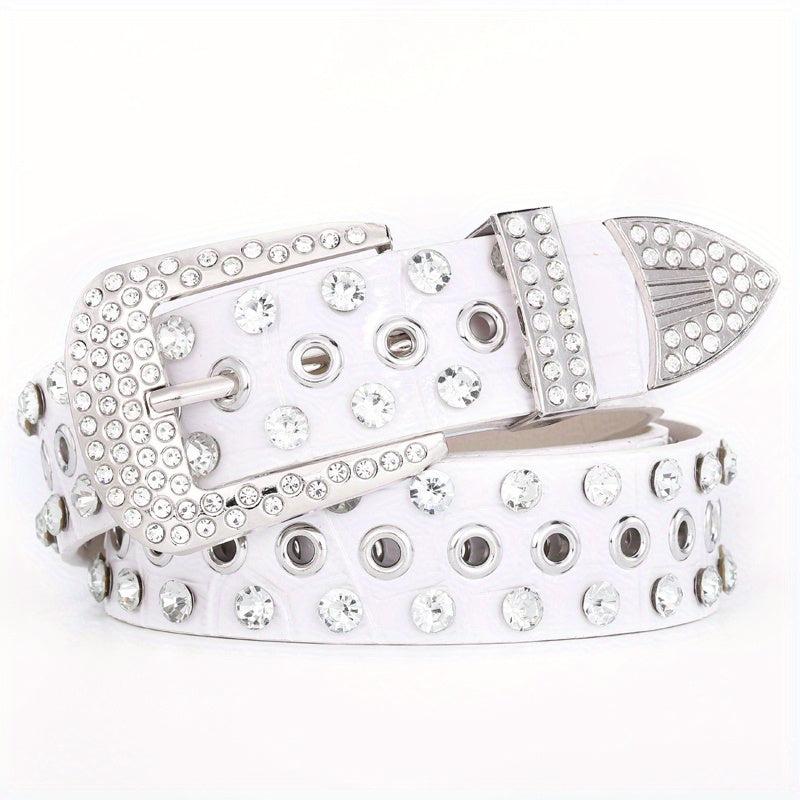 Add some bling to your outfit with this sparkling hollow out rhinestone belt. Made of solid PU leather, this Y2K cowboy cowgirl belt is perfect for both women and men.