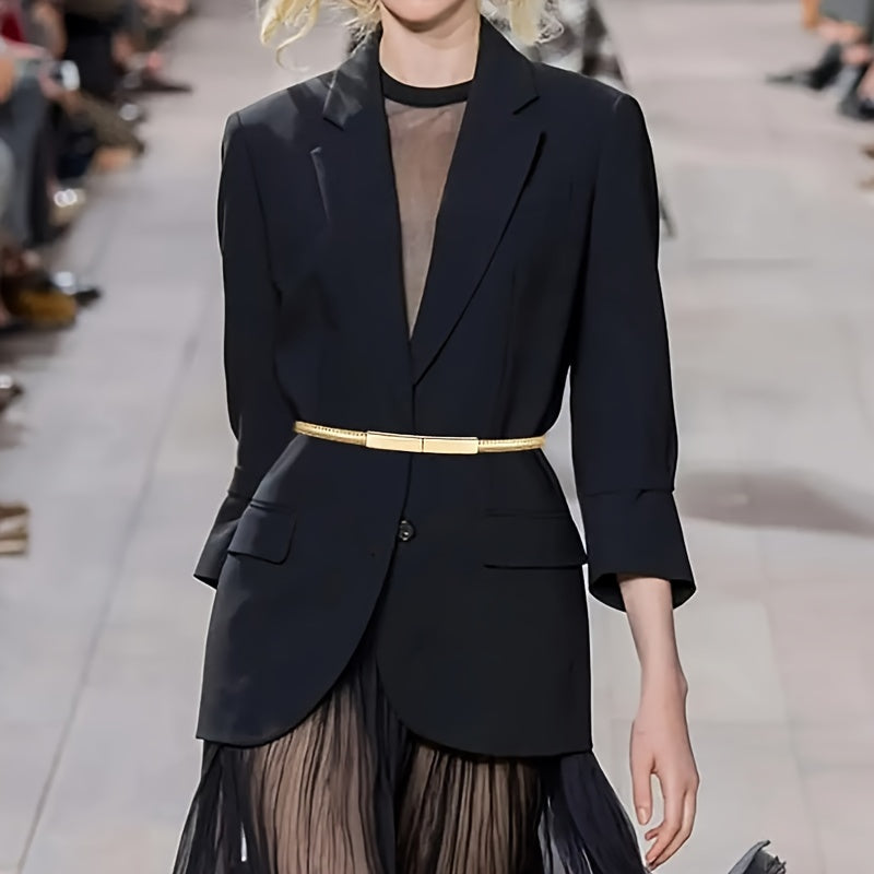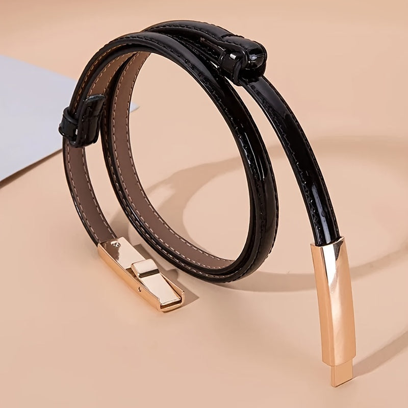 Sleek minimalist leather waist accessory perfect for daily commute. Non-textile craftsmanship in standard size. Do not wash.