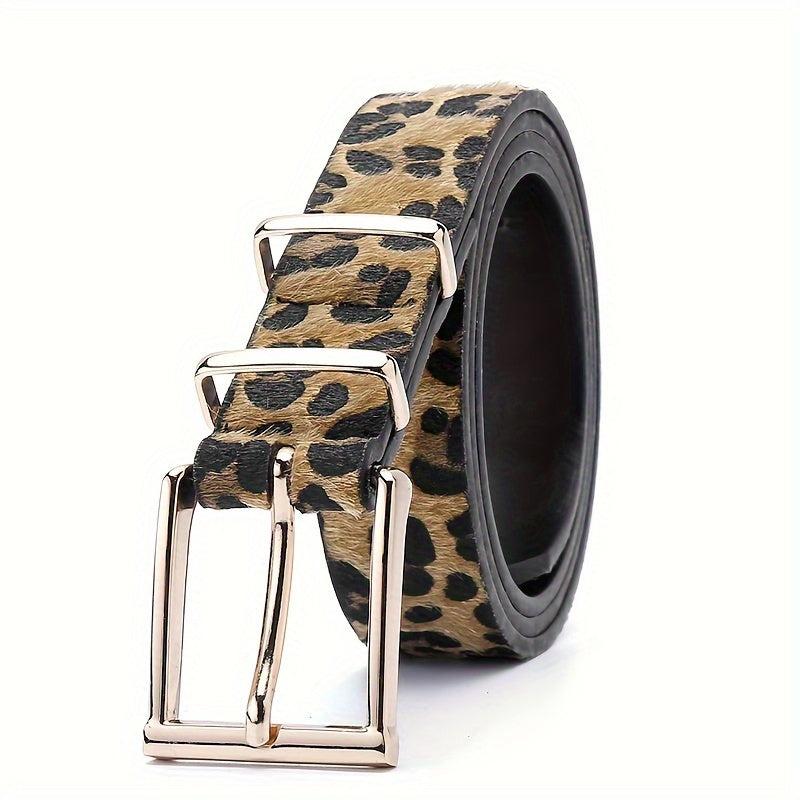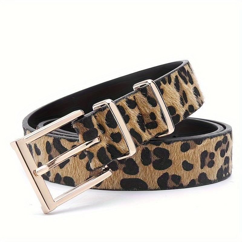 Add a touch of wild elegance to your look with this leopard print belt featuring a golden tone buckle. Perfect for casual date nights or beach outings.