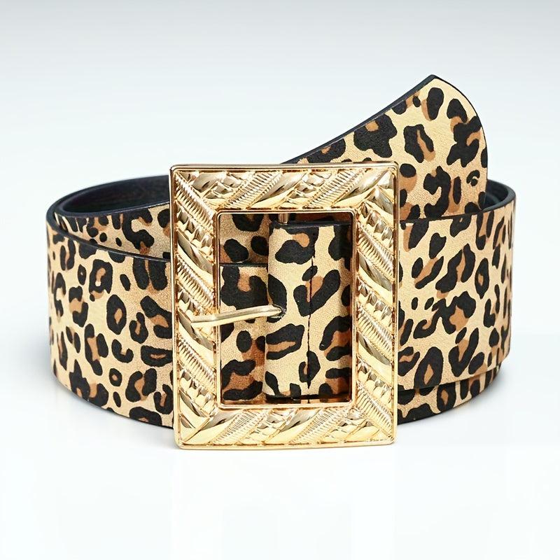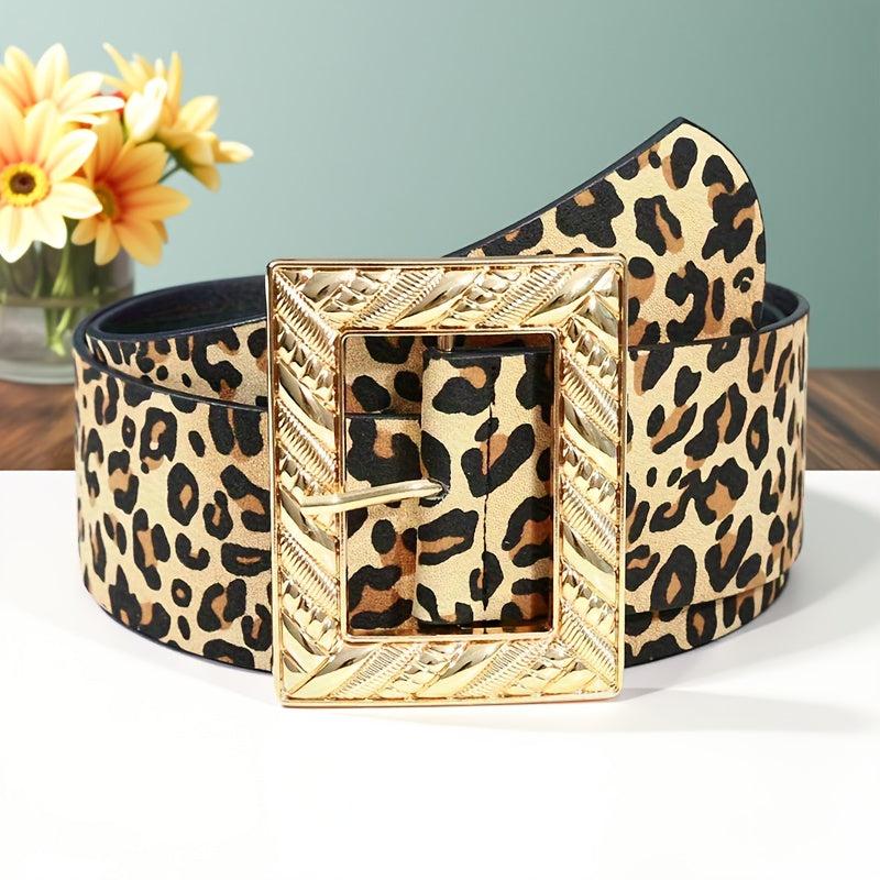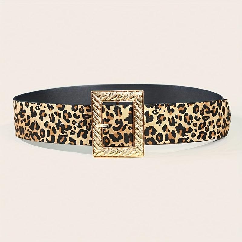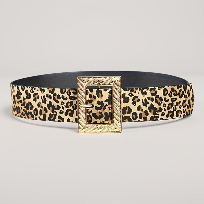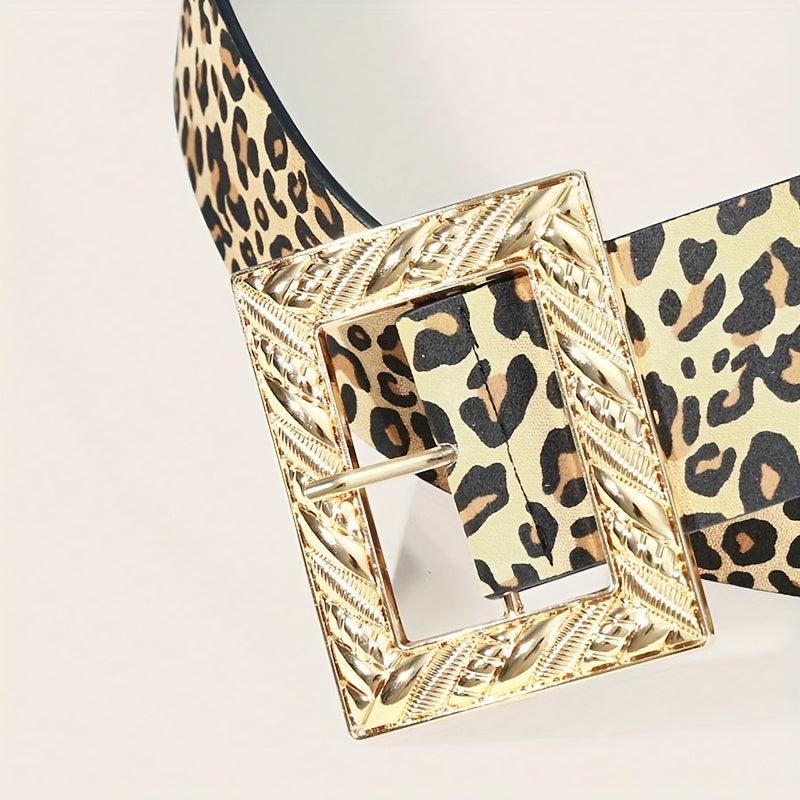 Add a touch of wild to your outfit with this leopard print belt featuring a golden square buckle. The adjustable design allows for a perfect fit as a waist cincher for dresses.