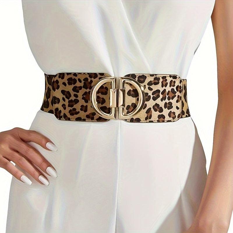 This leopard print belt features an elastic waist and a corset-style design, making it perfect for both casual and formal occasions. The belt is made of 100% polyester and offers a stretchy fit for comfort.