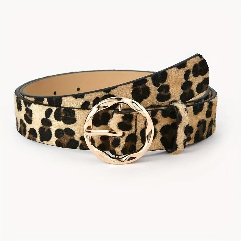 Stay stylish with this mature retro leopard print belt perfect for a casual weekend or night out. The round head needle buckle adds a vintage touch. One size fits most.