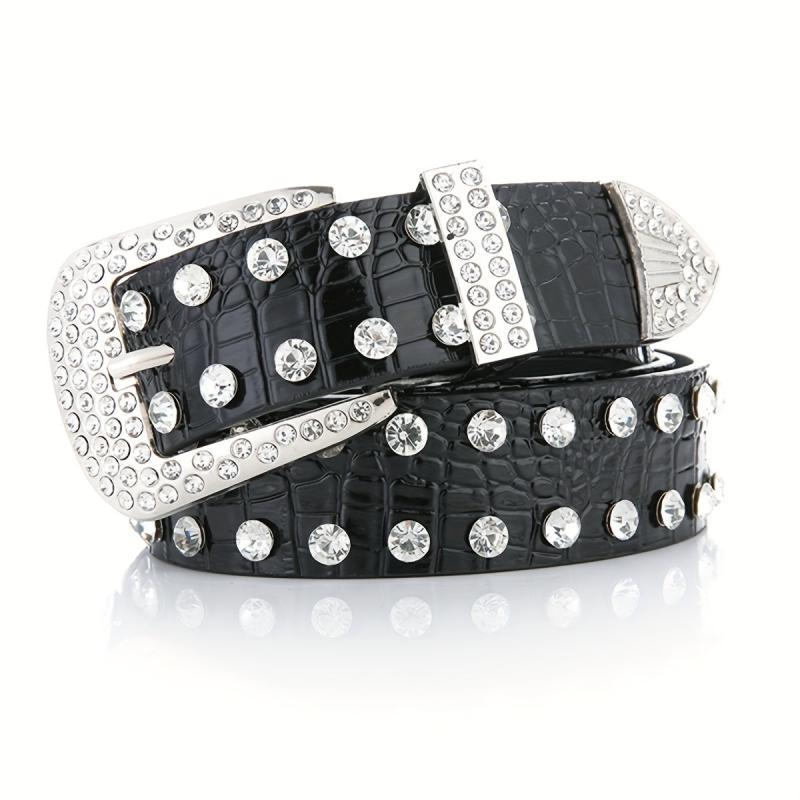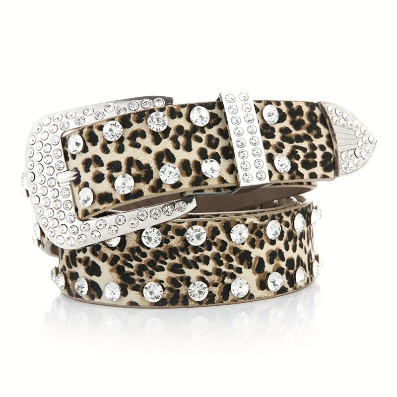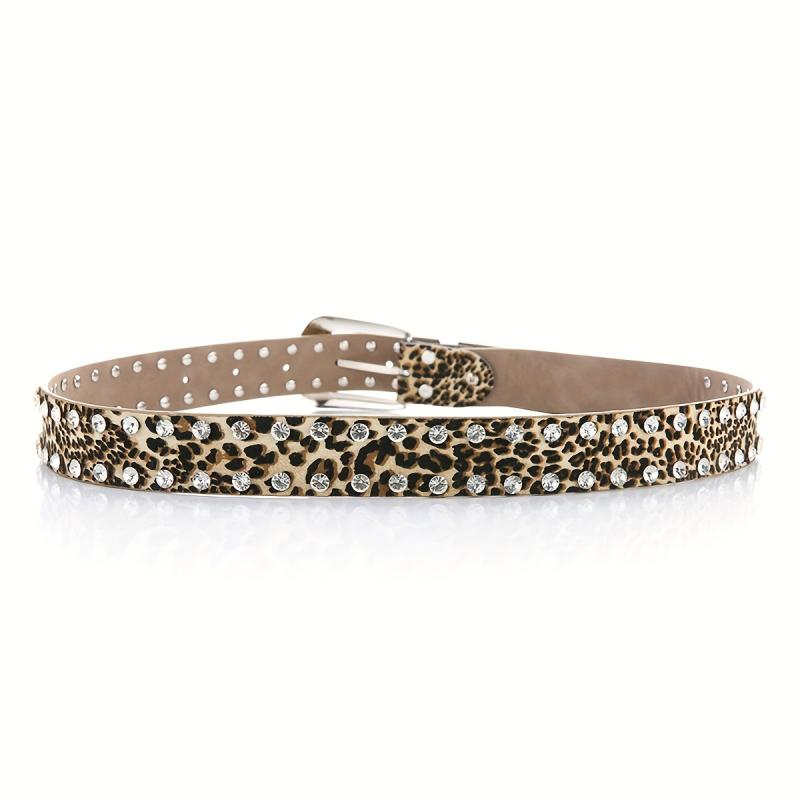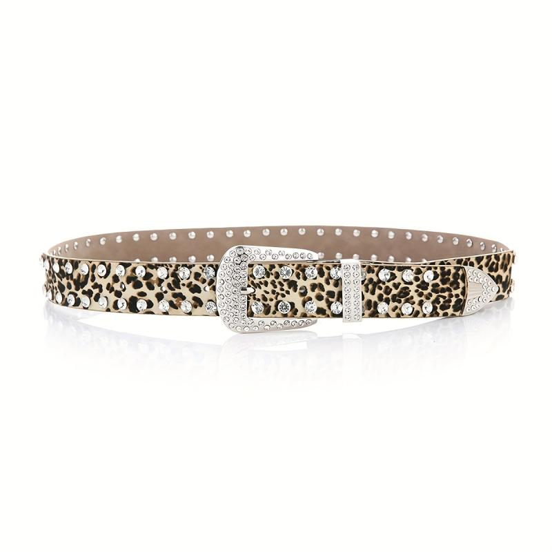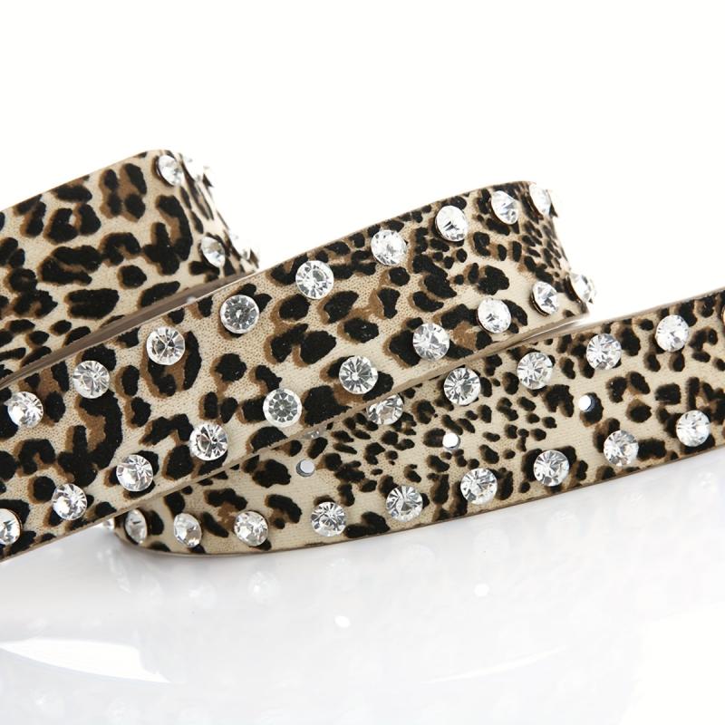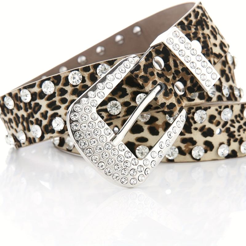 Add a touch of glamour to your outfit with this stylish leopard print belt featuring rhinestone embellishments. Made of high-quality PU leather, this wide belt is perfect for casual or dressy occasions.
