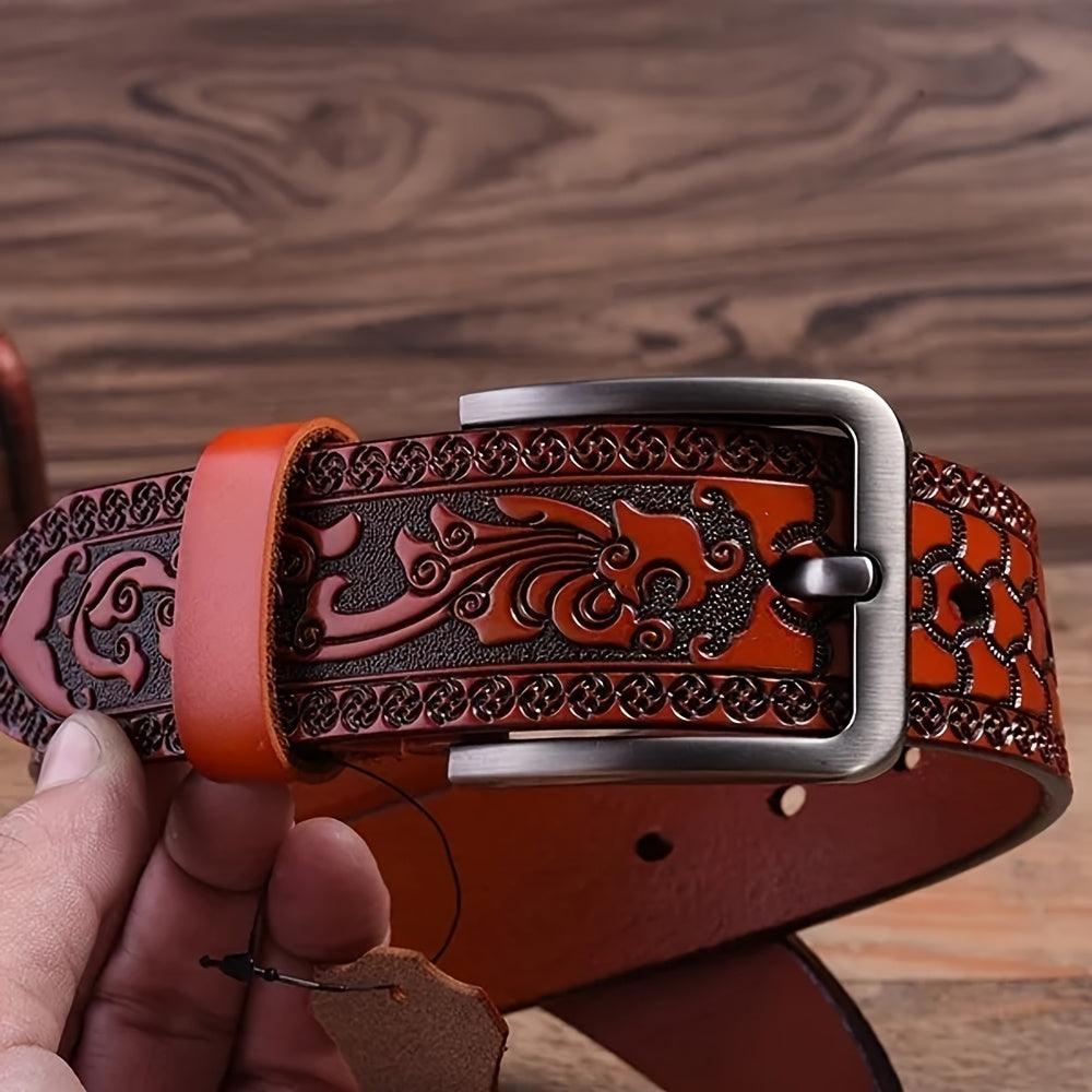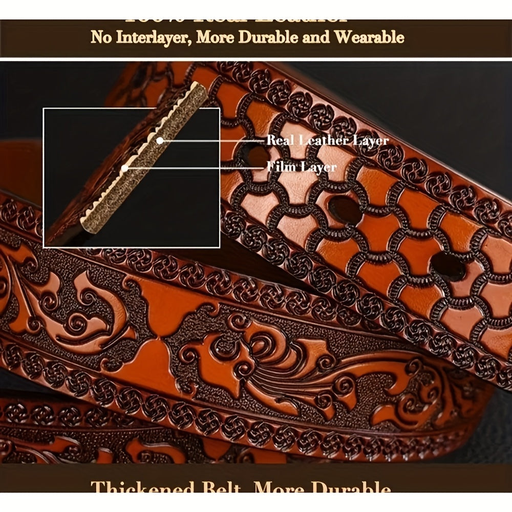 This LVIGC leather belt features a floral design in a casual style with an automatic square alloy buckle. It is durable, multifunctional, and hand washable, making it perfect for Mardi Gras and St. Patrick's Day celebrations.