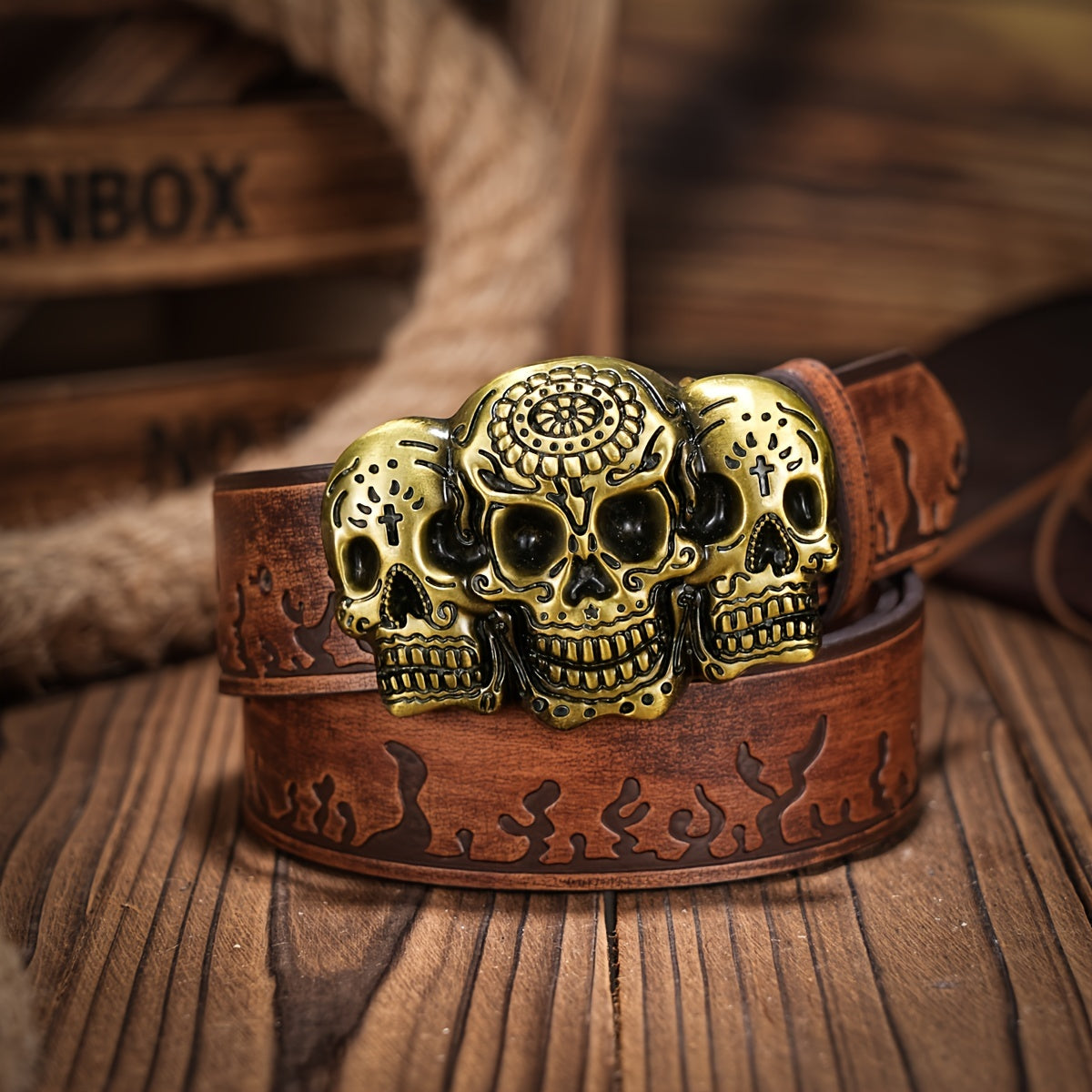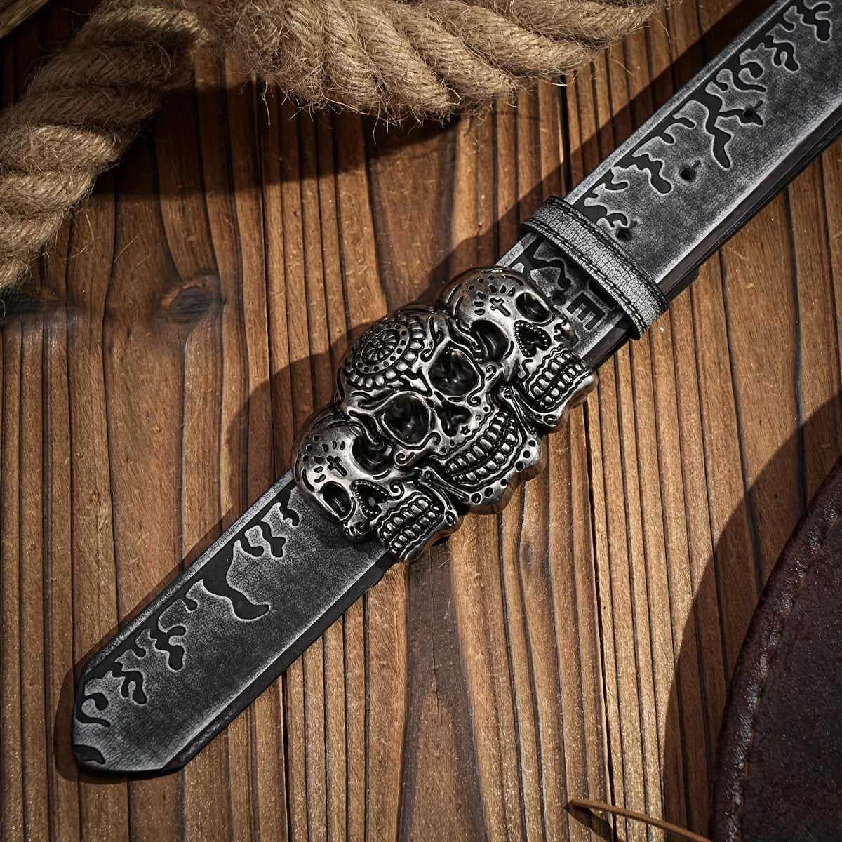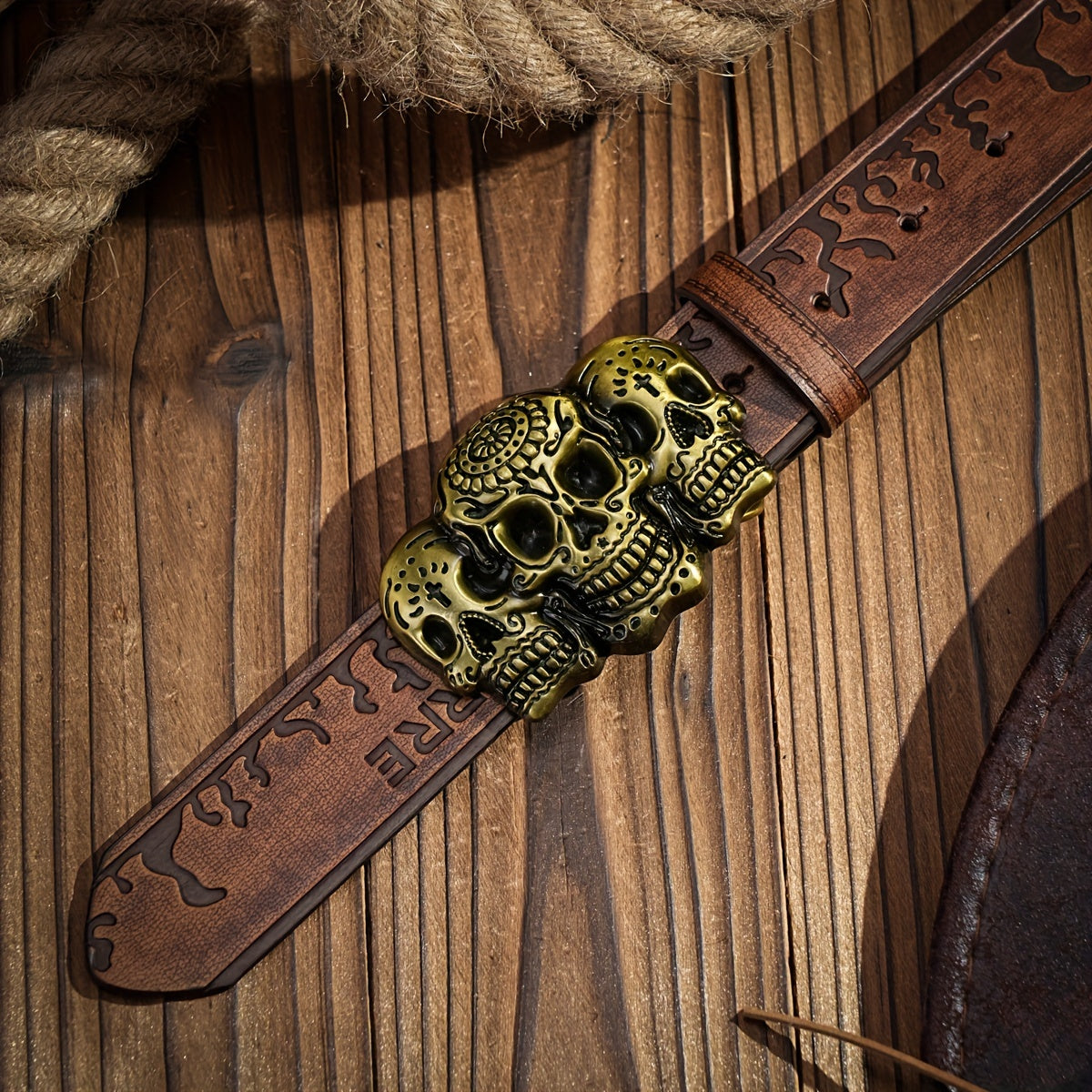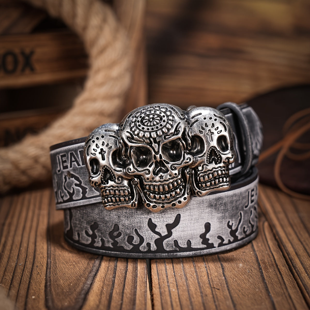 Add a touch of style to your outfits with this retro cowboy belt featuring a skull pattern buckle. Made of durable PU leather, this belt is perfect for jeans and casual wear.