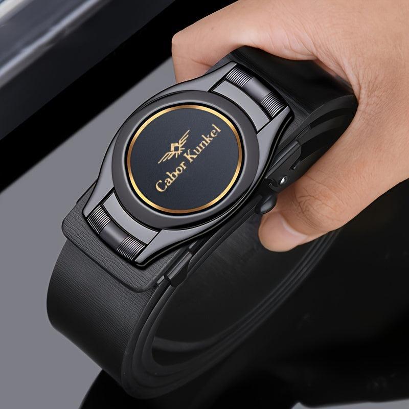 This men's business belt features a classic automatic buckle and is the perfect accessory for formal or business attire. It makes an ideal gift choice for men.