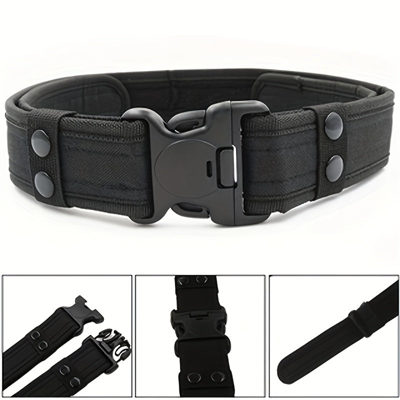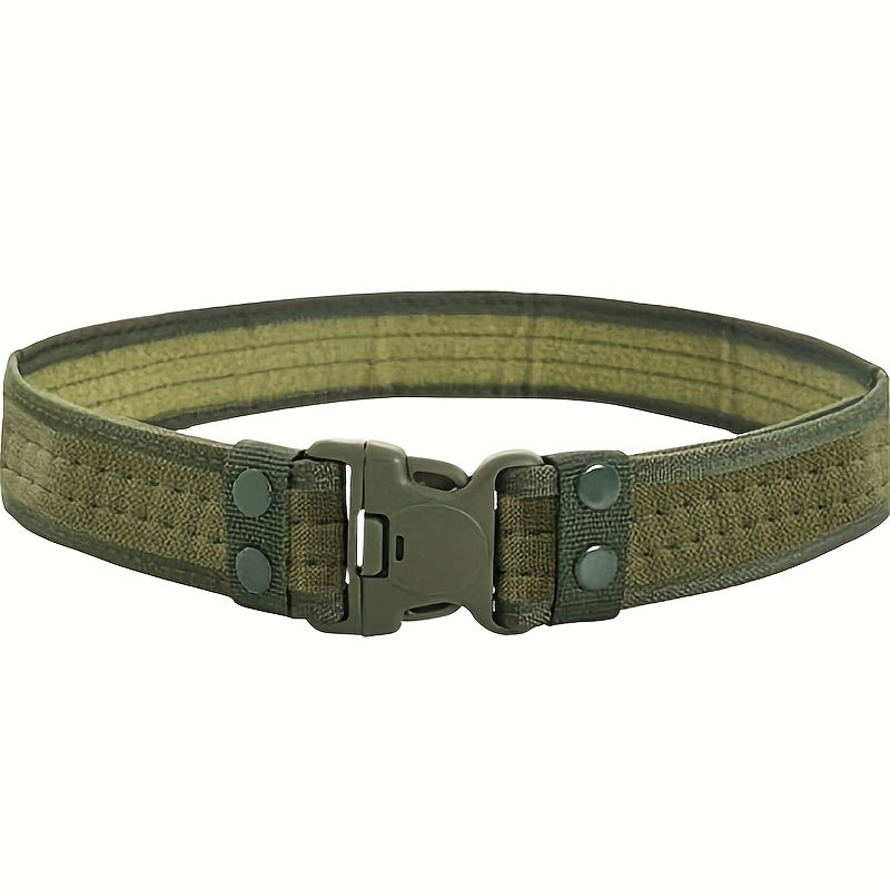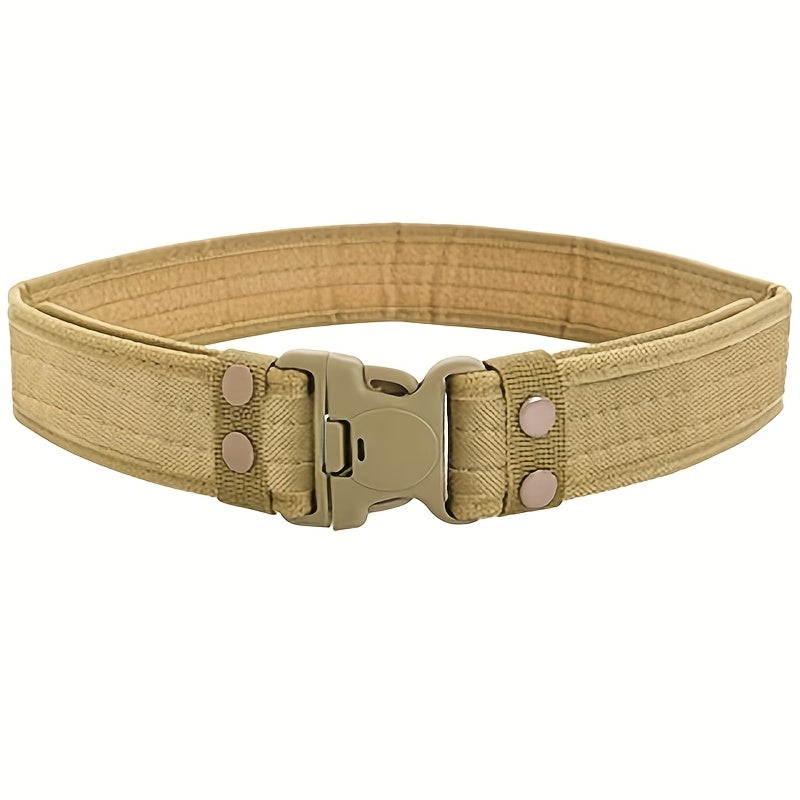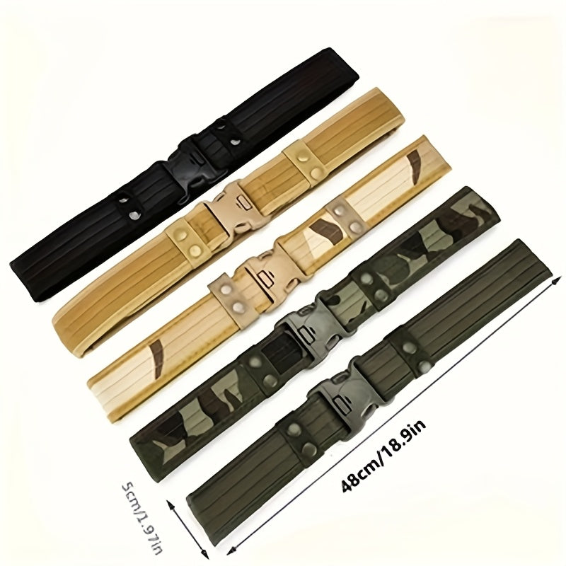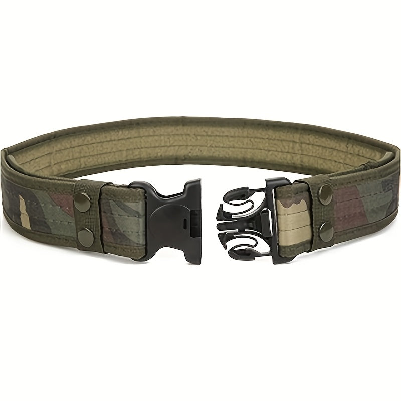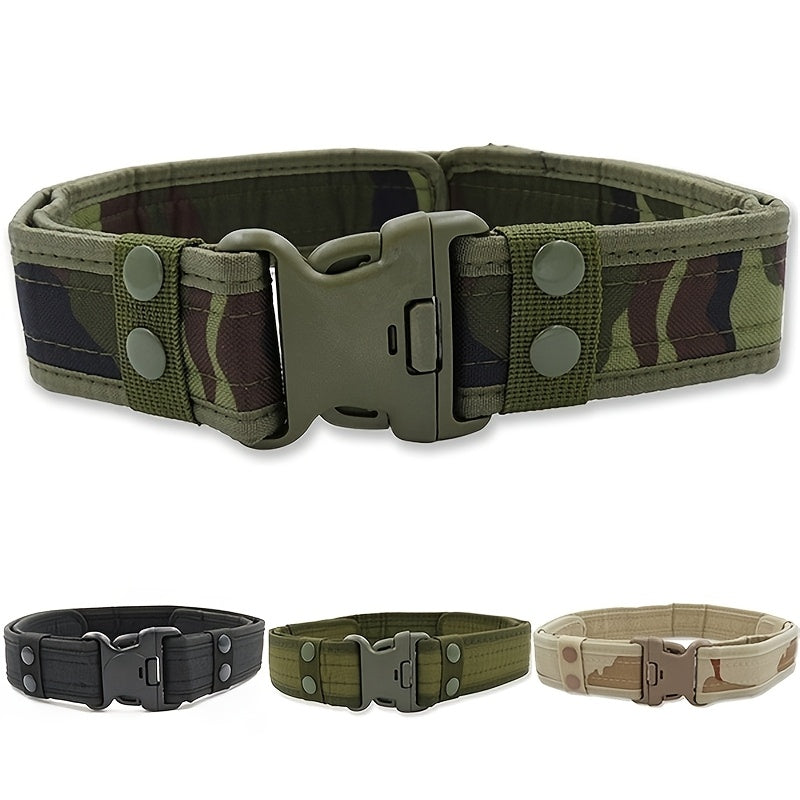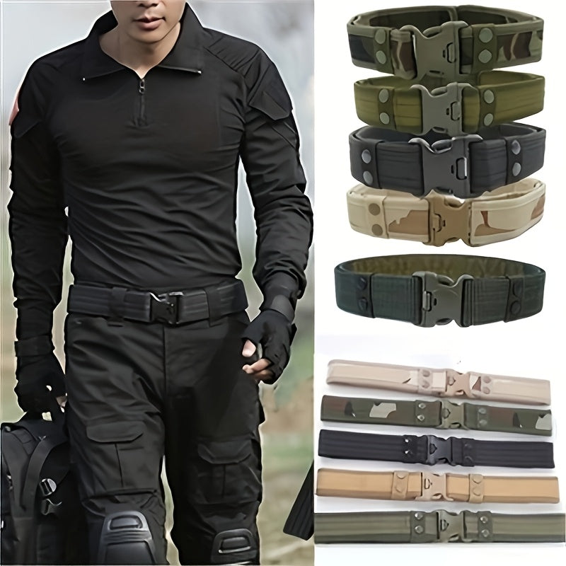 This men's canvas belt comes in military green, camouflage, and khaki colors. Perfect for casual or outdoor wear.