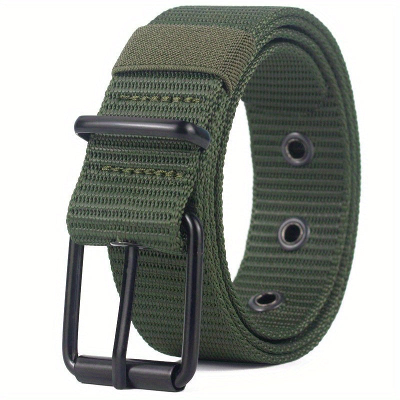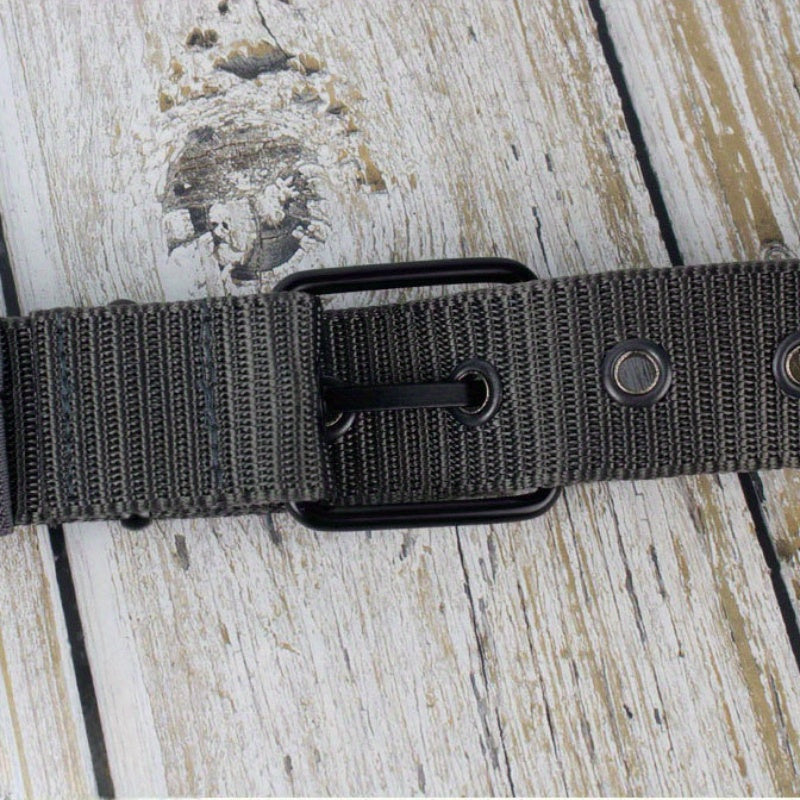 This casual canvas belt is designed for durability with needle stitching, perfect for jeans and pants.