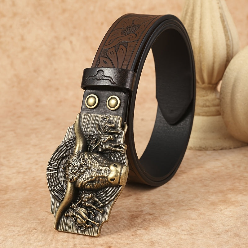 Men's Cowboy Belt w/ Bull Head Buckle Faux Leather Casual Alloy Buckle