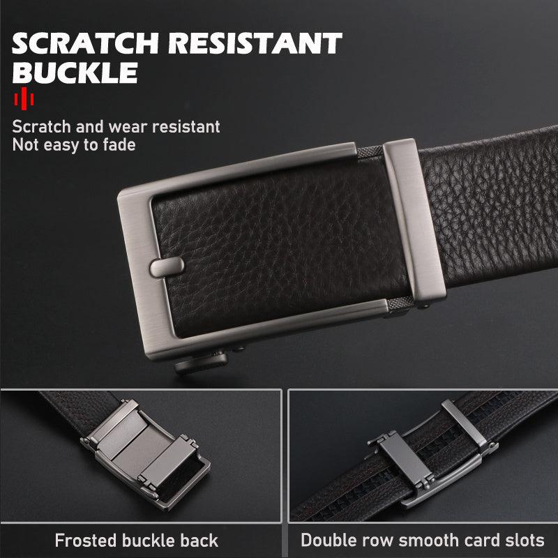 Upgrade your business attire with this adjustable leather cowhide belt featuring a durable alloy buckle. Crafted from head layer leather, this belt is perfect for any occasion.