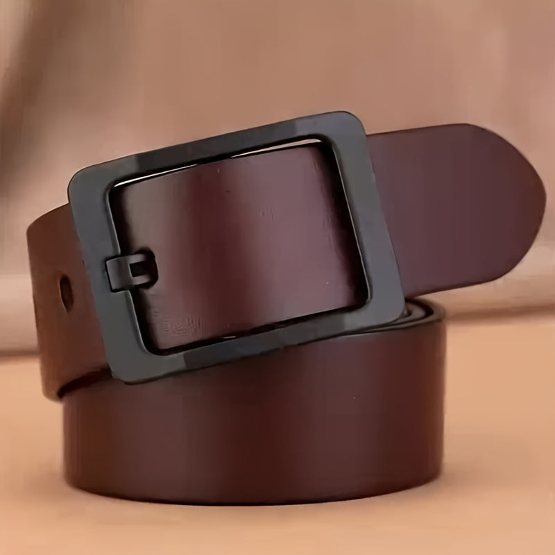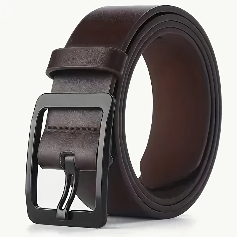 Elevate your style with this men's leather belt featuring a sleek alloy buckle and smooth finish. Perfect for business and casual wear, this belt also makes a great gift.