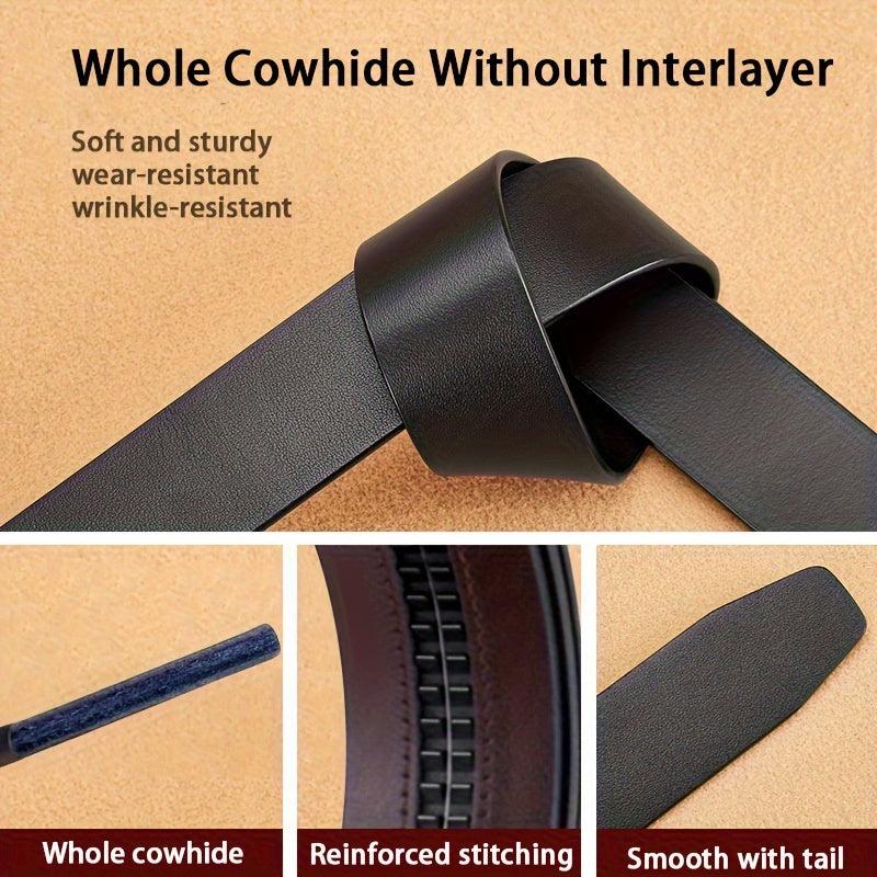 This men's leather belt with automatic buckle is perfect for all daily occasions and formal dress pants. It's an ideal choice for any outfit.