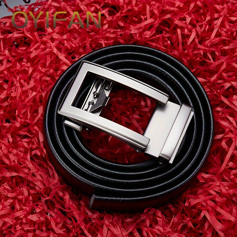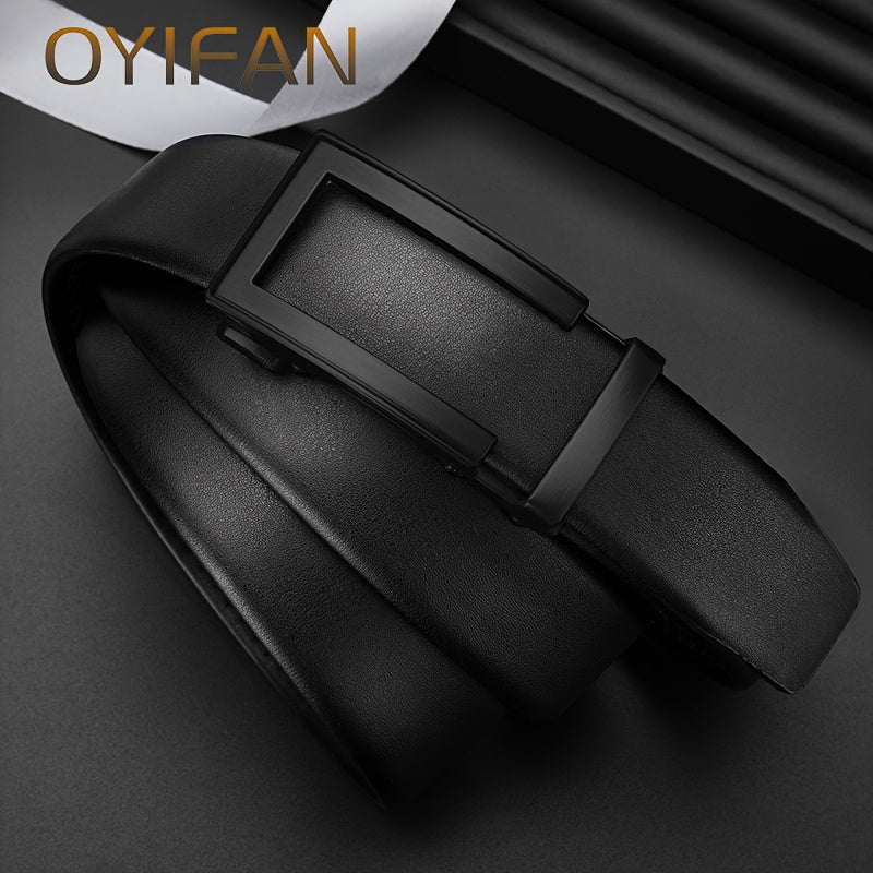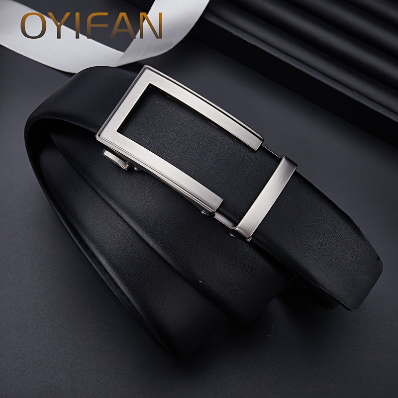 Stay stylish and secure with this men's leather ratchet belt featuring an alloy automatic buckle and smooth cow leather. Perfect for business or casual wear.