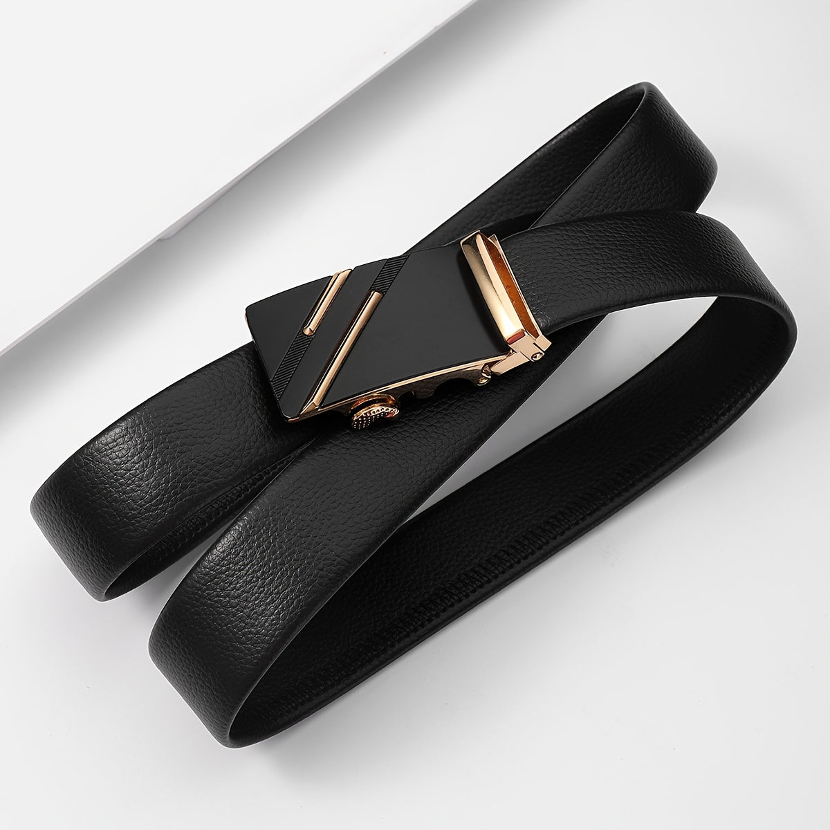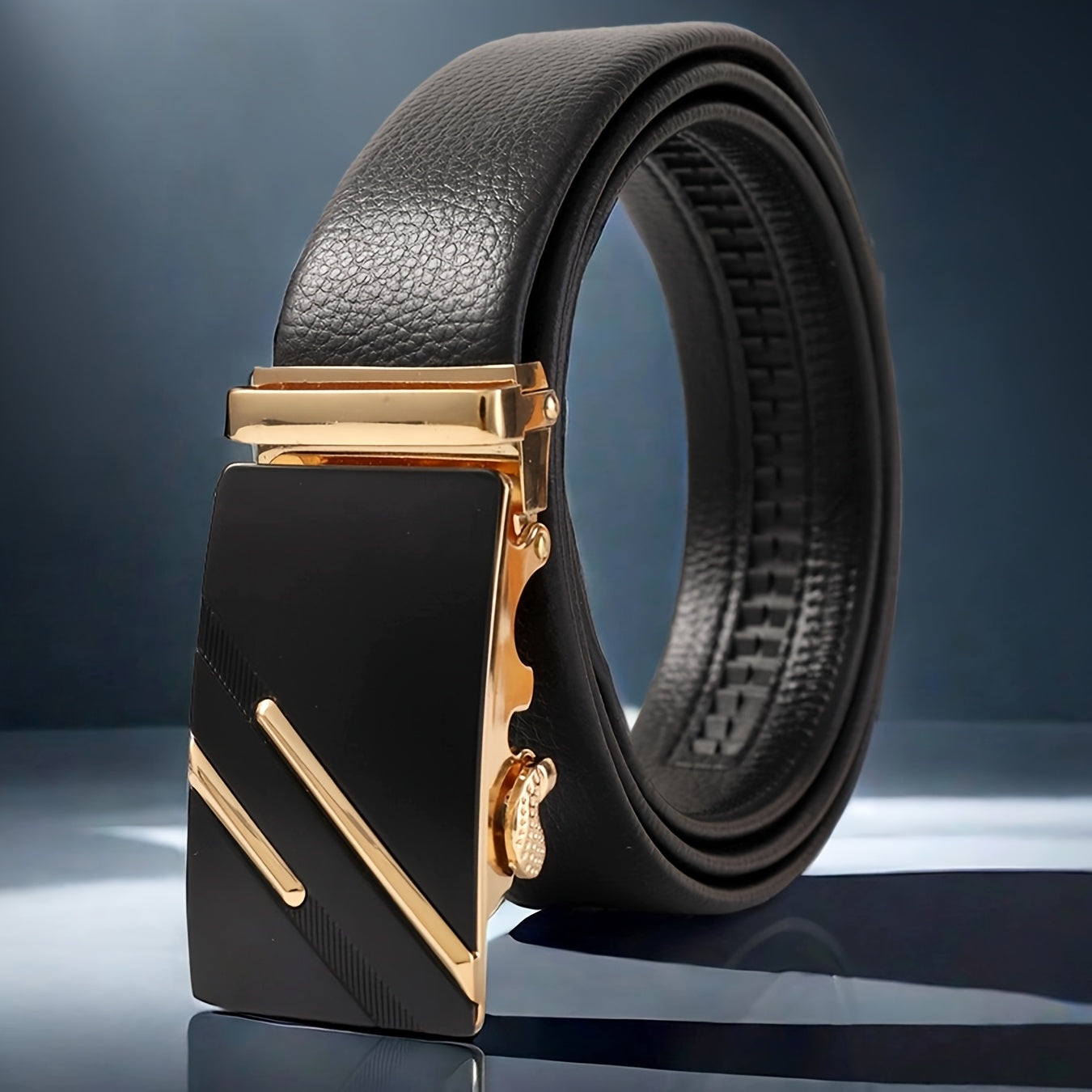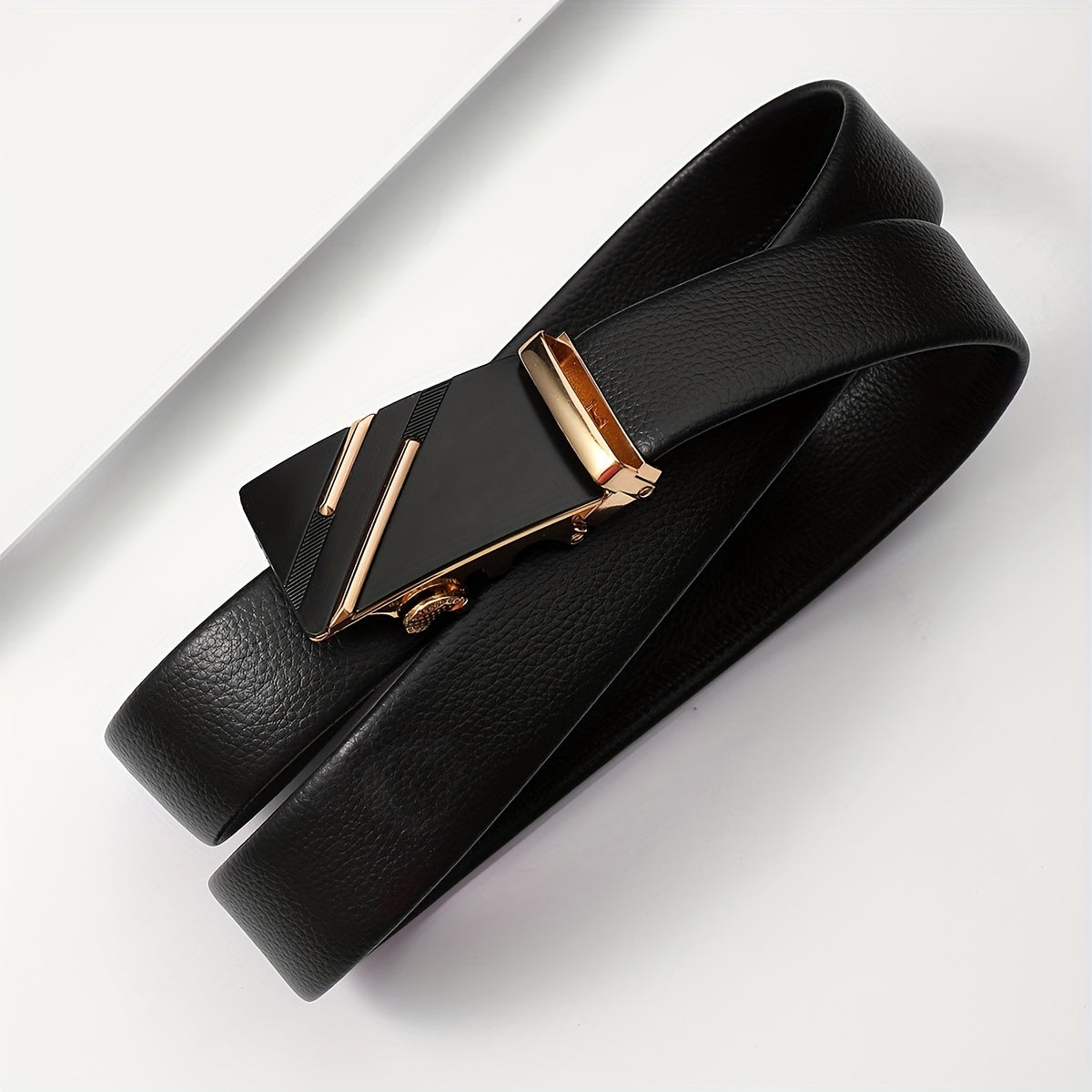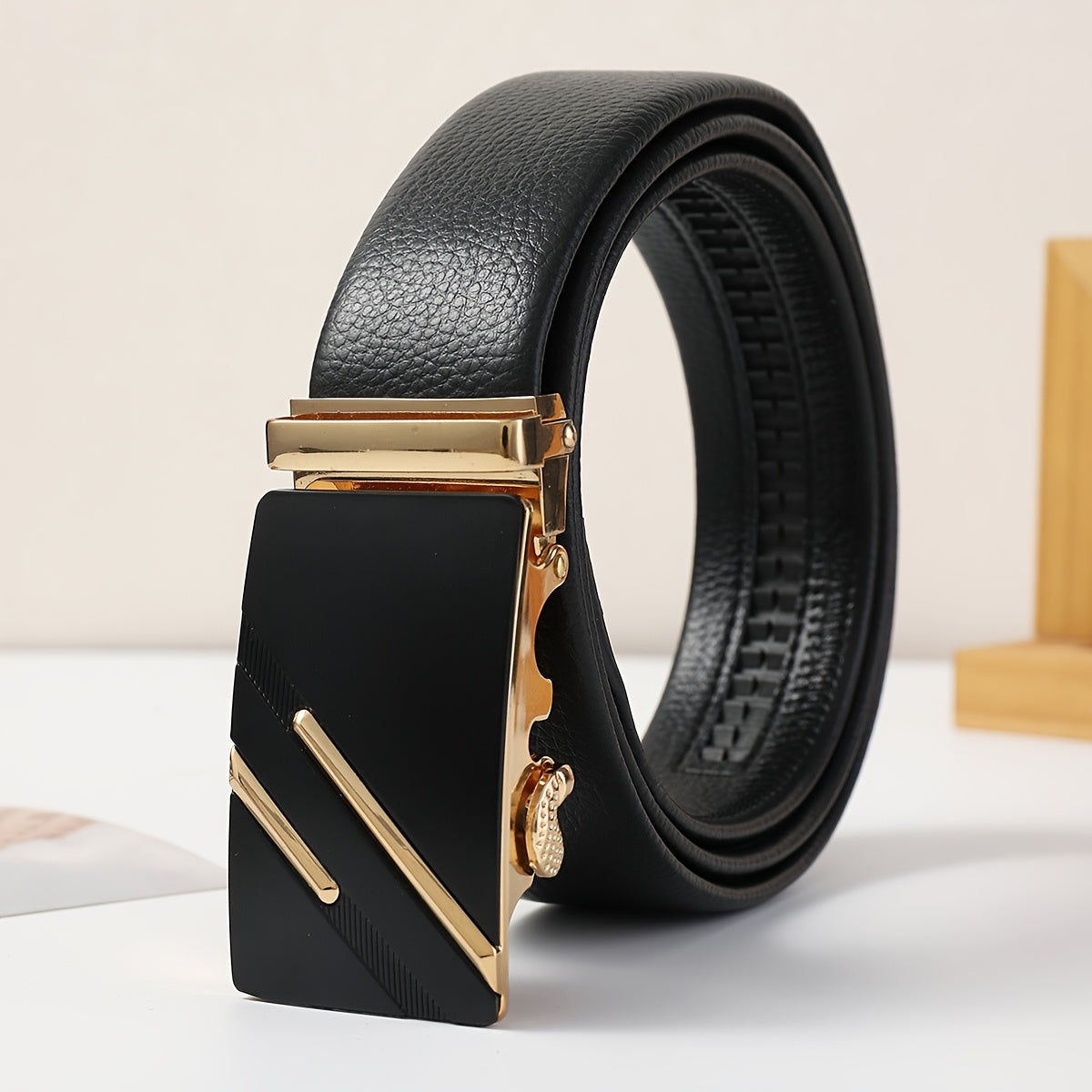 Elevate your style with this men's business casual belt featuring a chic design and high-quality PU leather material. The golden tone clasp adds a touch of sophistication, making it perfect for both casual attire and formal occasions.