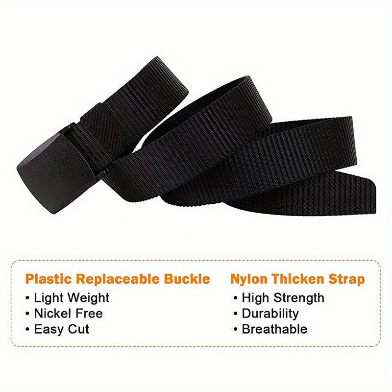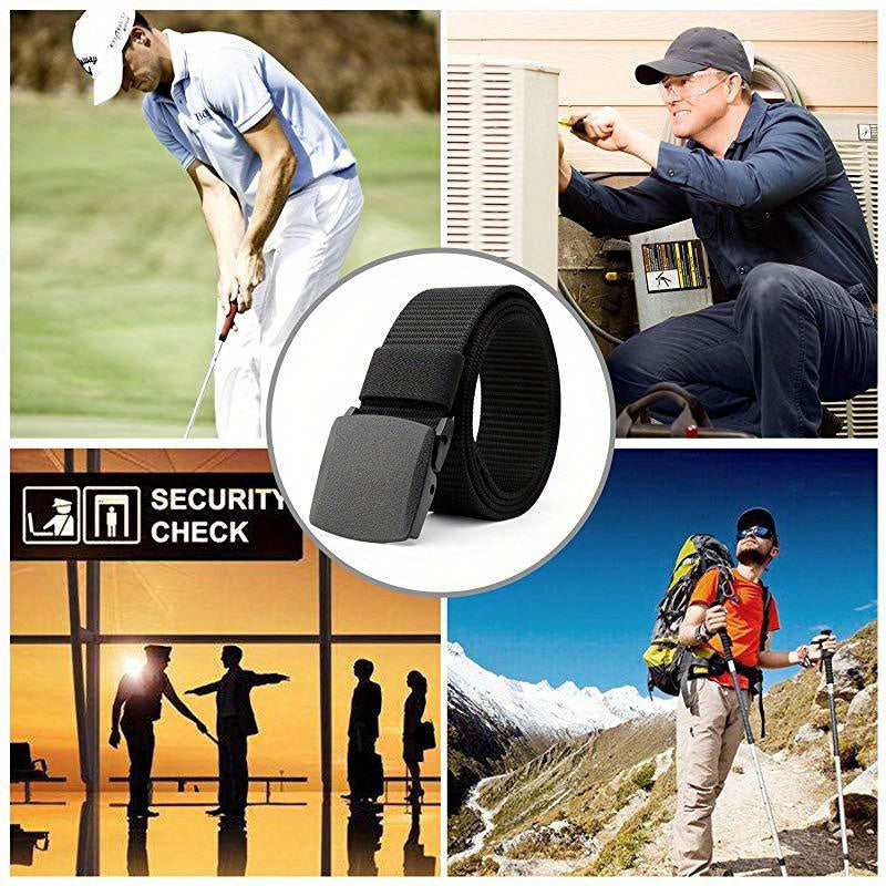 This durable woven canvas belt is designed for outdoor and adventure activities, featuring an automatic buckle for easy use.