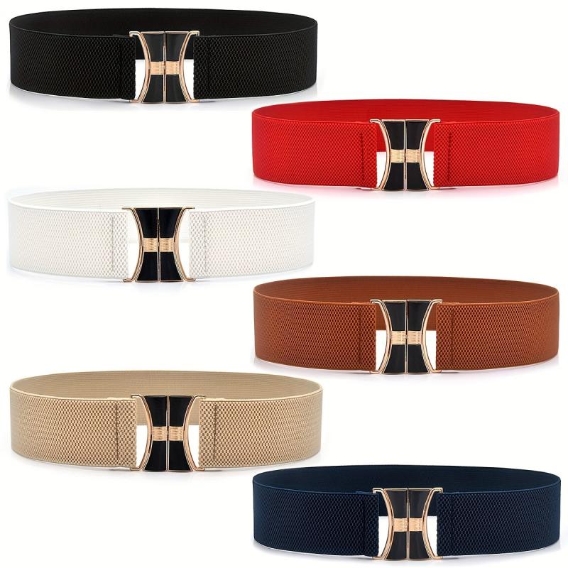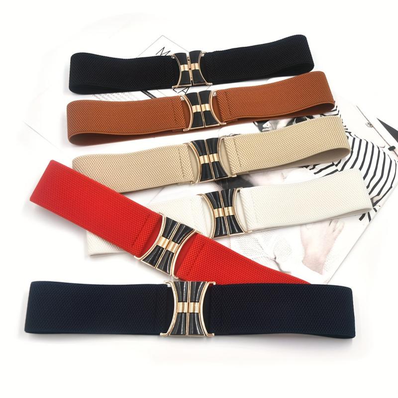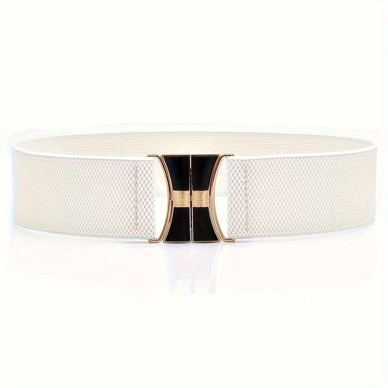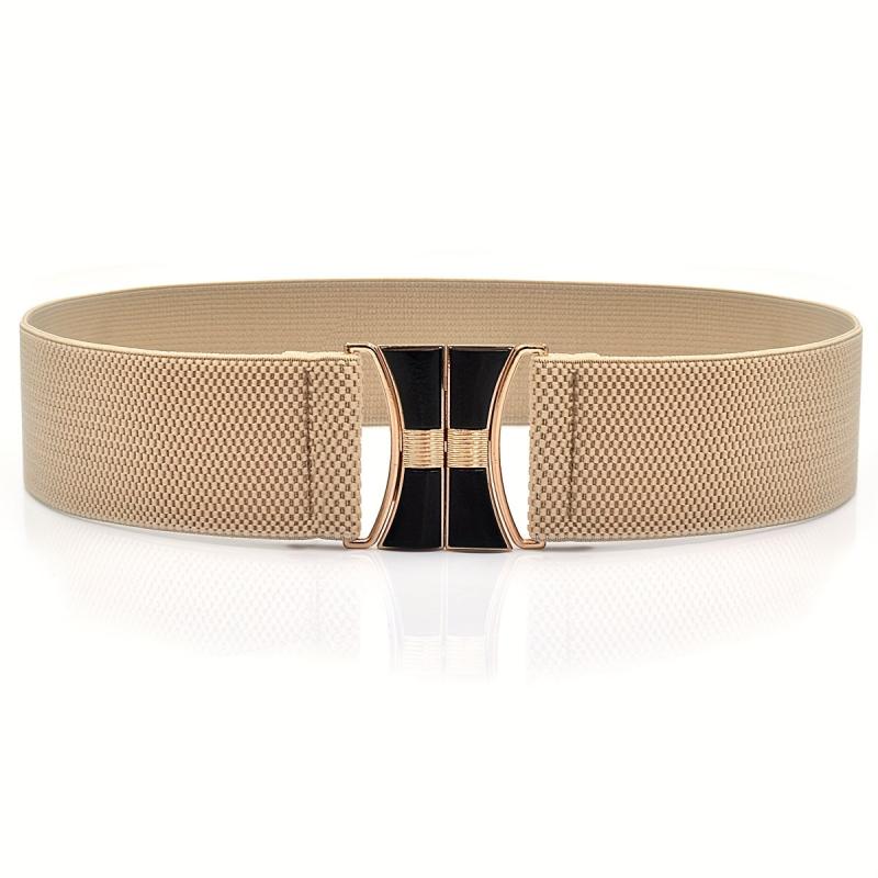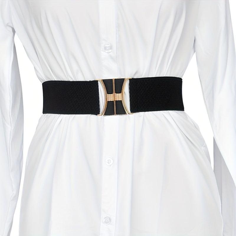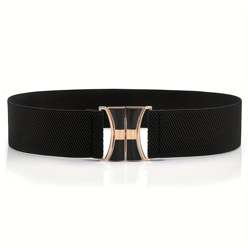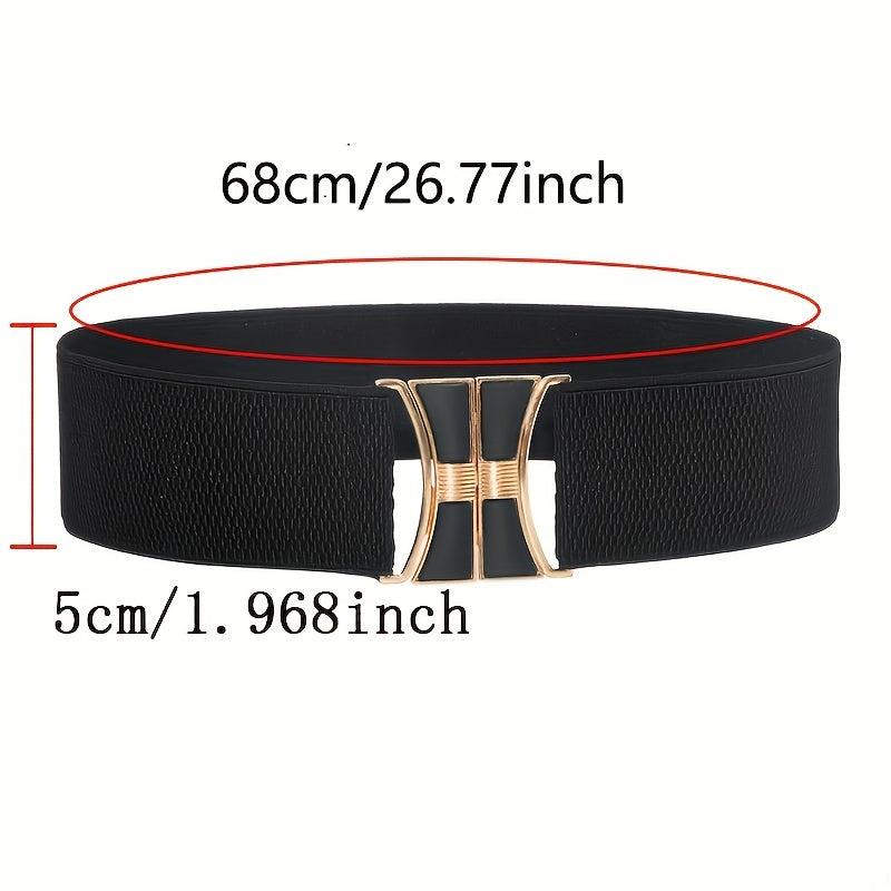 Add a touch of style to your outfit with this chic Golden Pair Buckle Belt. Perfect for pairing with casual down jackets and dresses, this wide girdle waist band adds a decorative touch to your look.