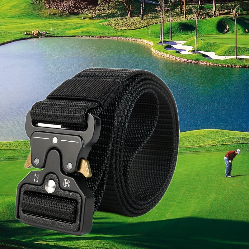 This outdoor belt is perfect for golf and various activities. It features a quick release plastic buckle for easy adjustment and comfort.