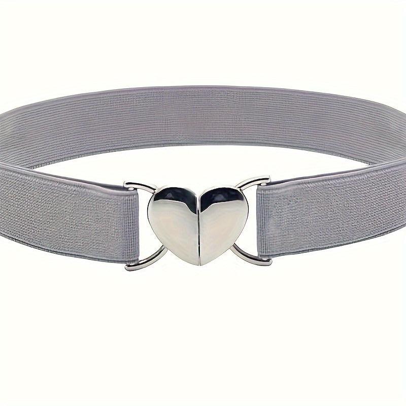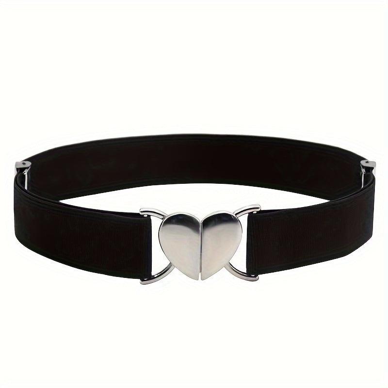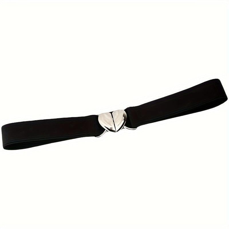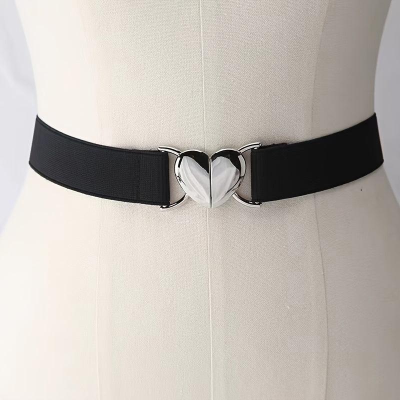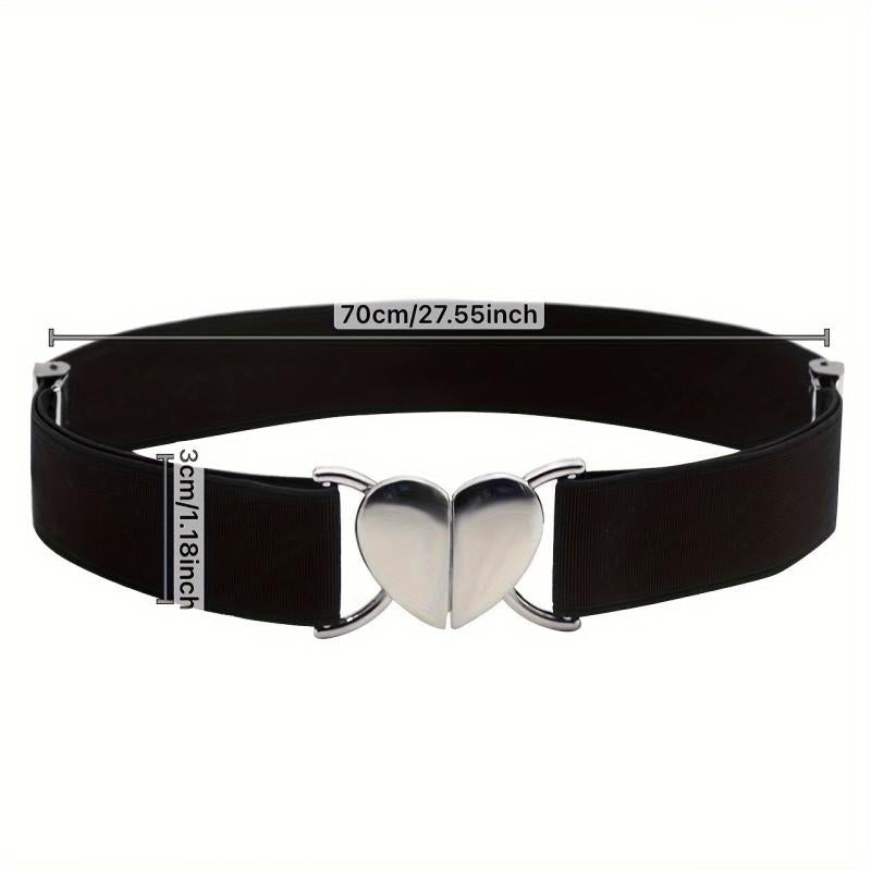 This classic elastic belt with a peach heart buckle is perfect for adding a touch of style to your outfit. Made of high-quality materials, it is durable and comfortable to wear.