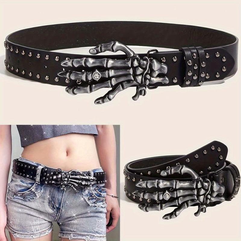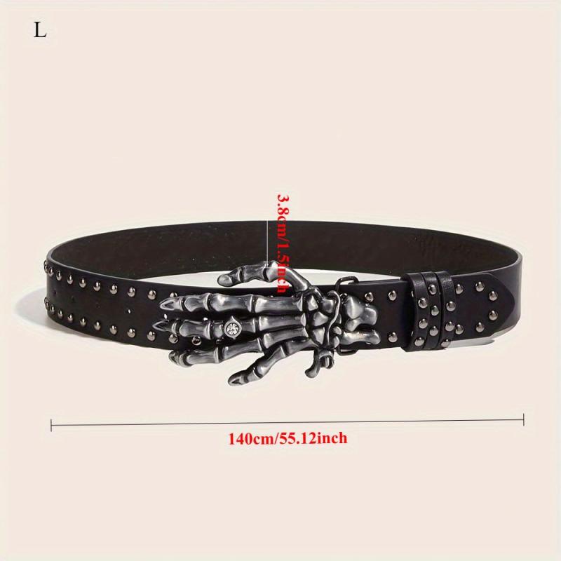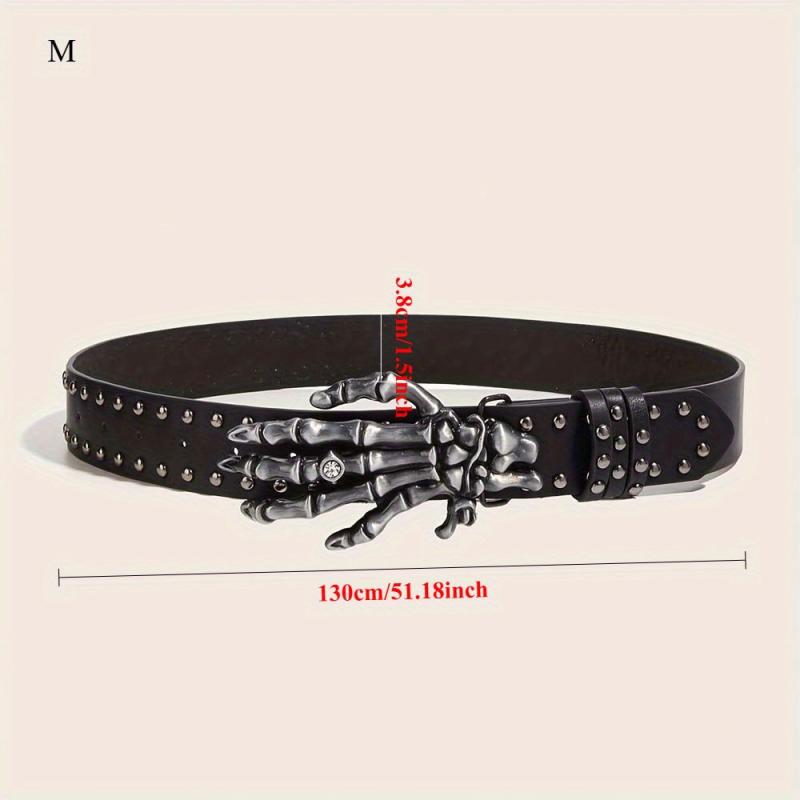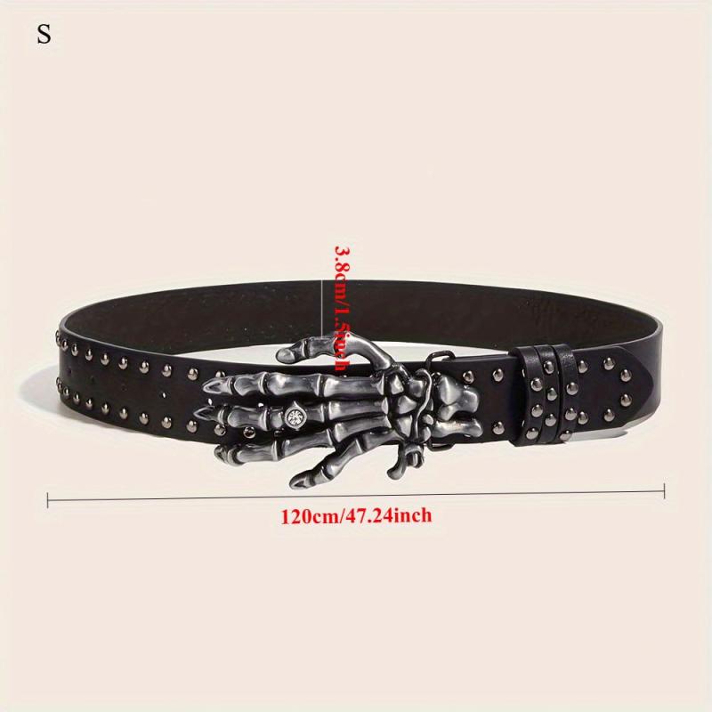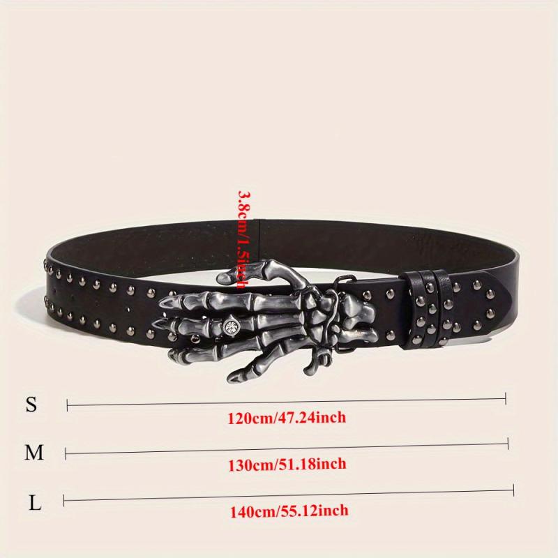 This stylish belt features a punk skull metal buckle, perfect for adding a touch of edge to your outfit. Made of high-quality materials, this belt is suitable for both men and women. Ideal for a hip-hop, goth, or retro look.