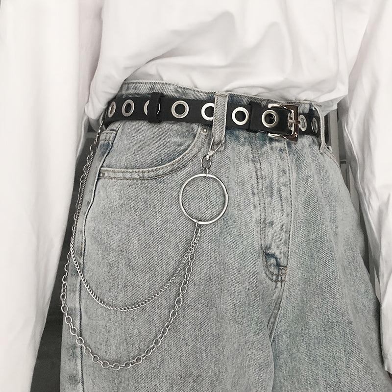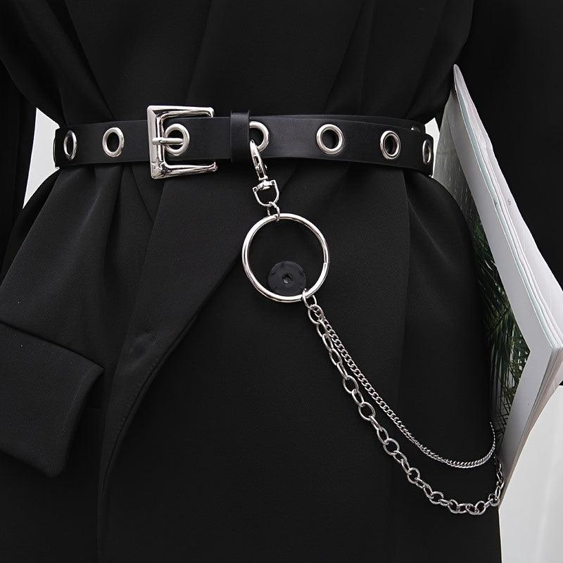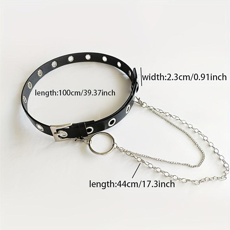 This adjustable chain belt is a unique fashion accessory that adds a punk and gothic vibe to your outfits. It is perfect for pairing with jeans, dresses, and skirts. Unisex design.