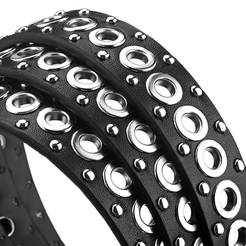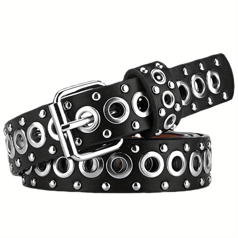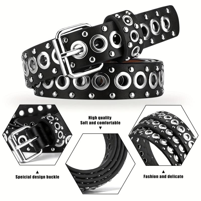 This versatile belt is perfect for adding a punk touch to your outfit. It features a rivet and hollow air eye design that complements jeans and other casual wear.