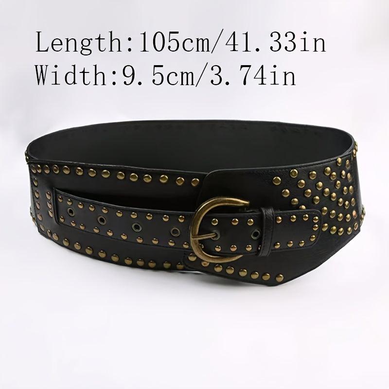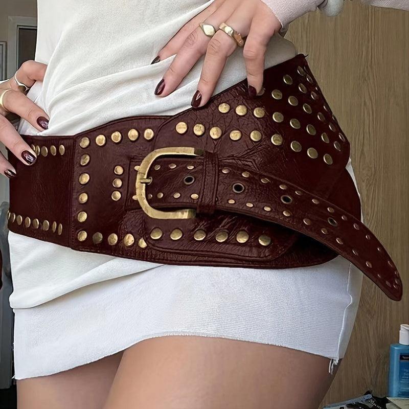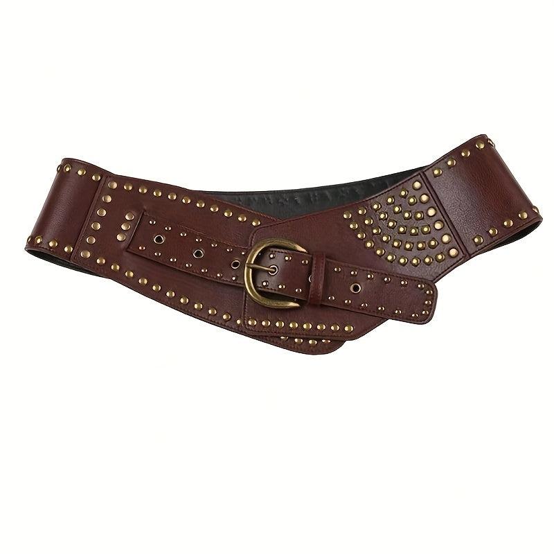 This trendy PU belt is perfect for daily street wear with its punk style design. Features brown studs and buckle decoration.