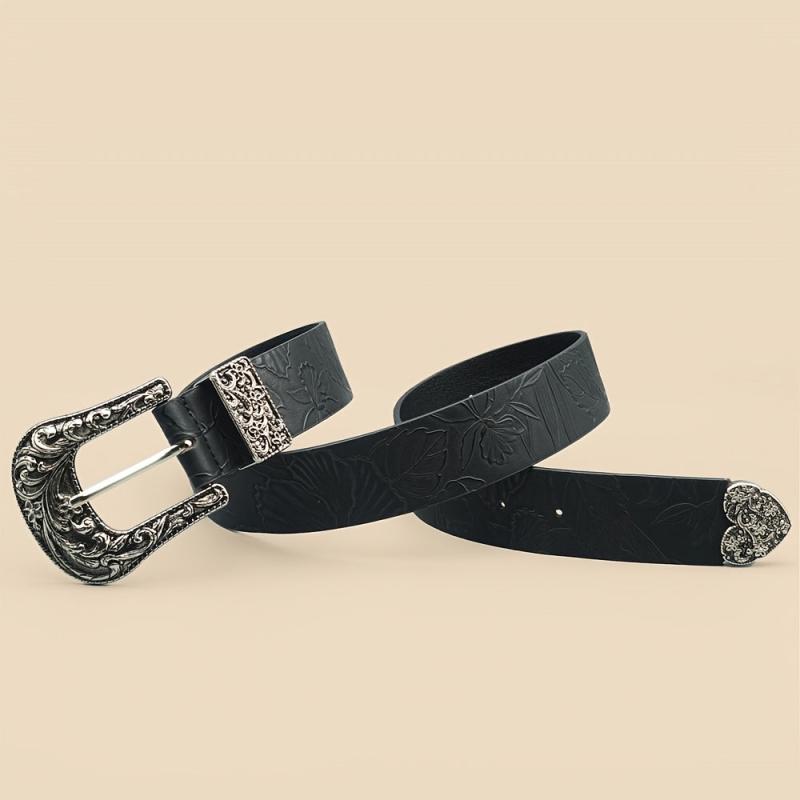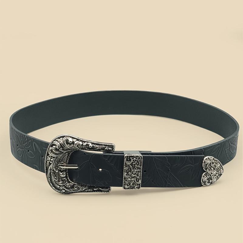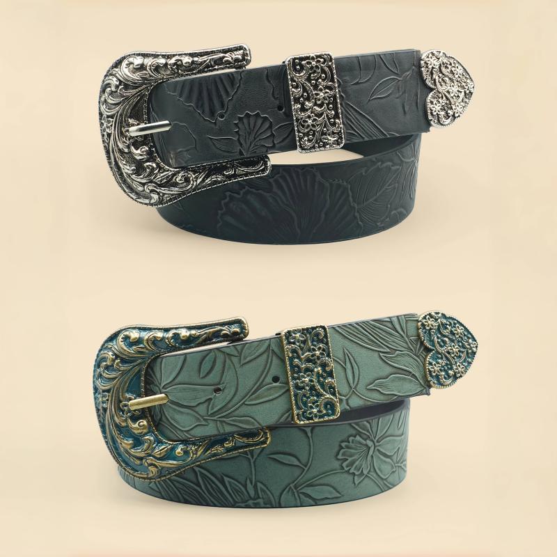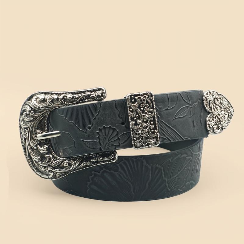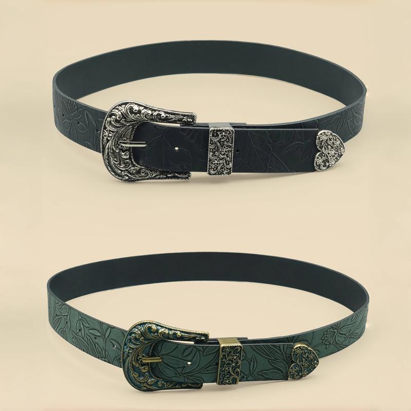 This retro wide belt in dark washed gray features an embossed and carved design that adds a touch of elegance to any outfit. It's versatile for autumn and winter, perfect for jeans, suits, and more.
