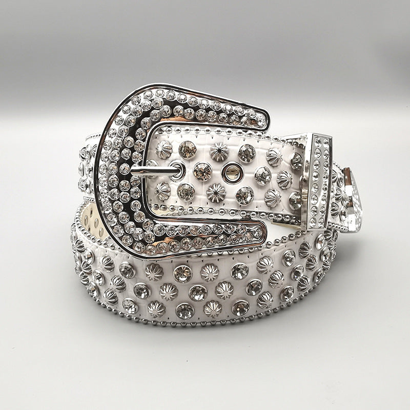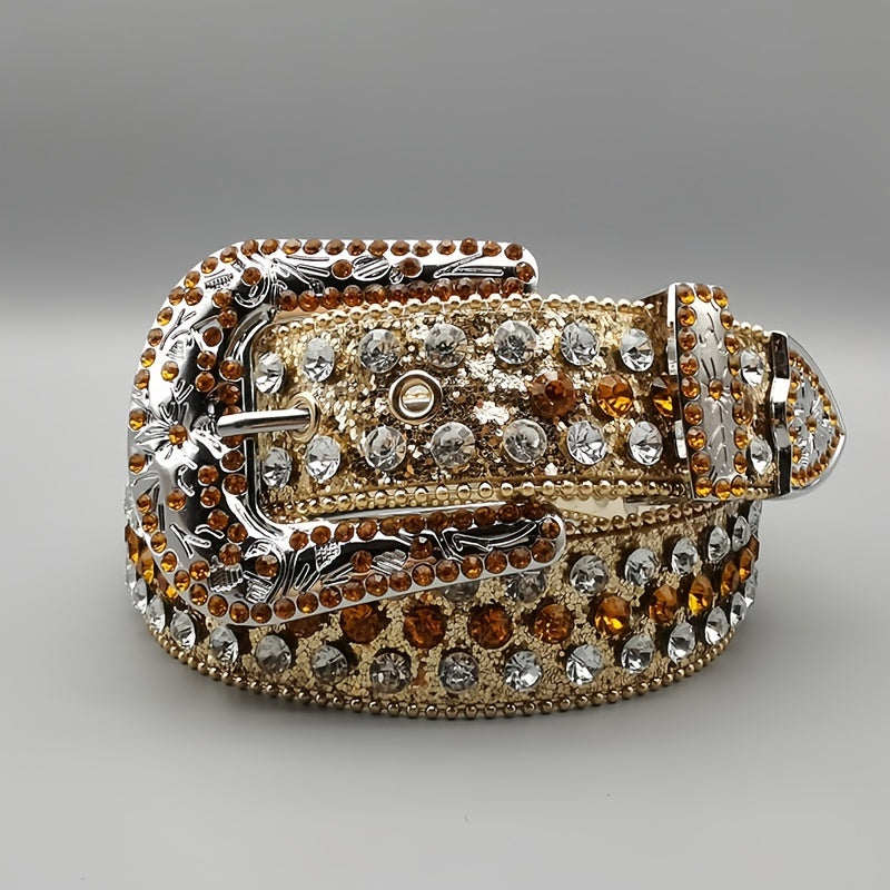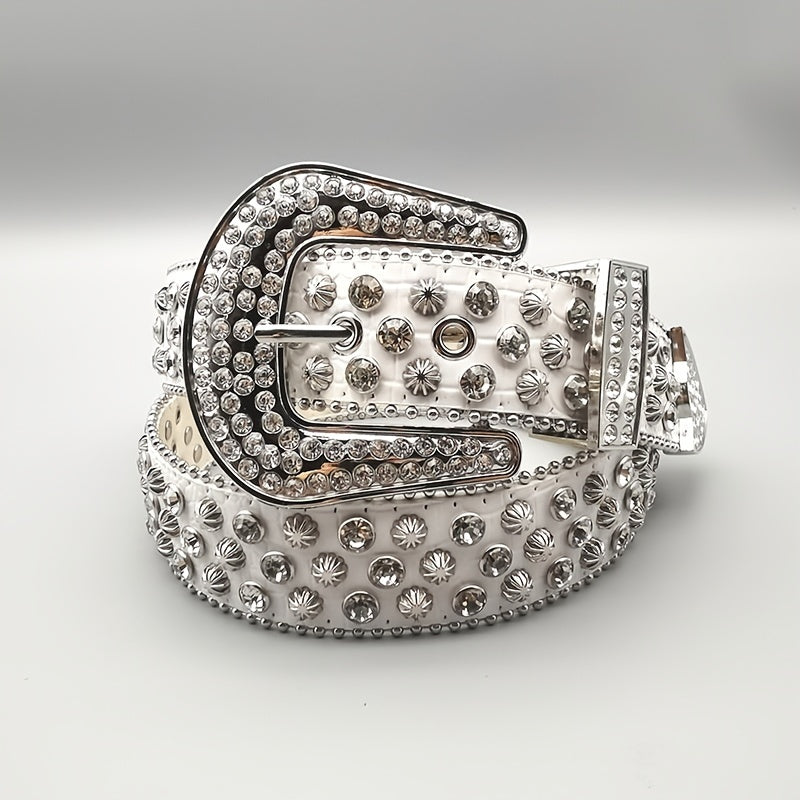 Add a touch of sparkle to your outfit with this trendy belt. Made of high-quality PU leather, featuring inlaid rhinestones and a removable pin buckle. Perfect for adding a punk or hip-hop vibe to your look.