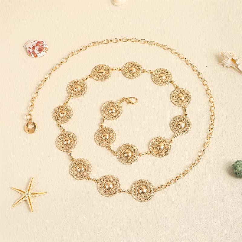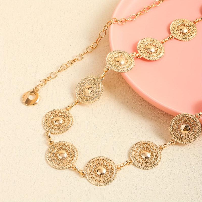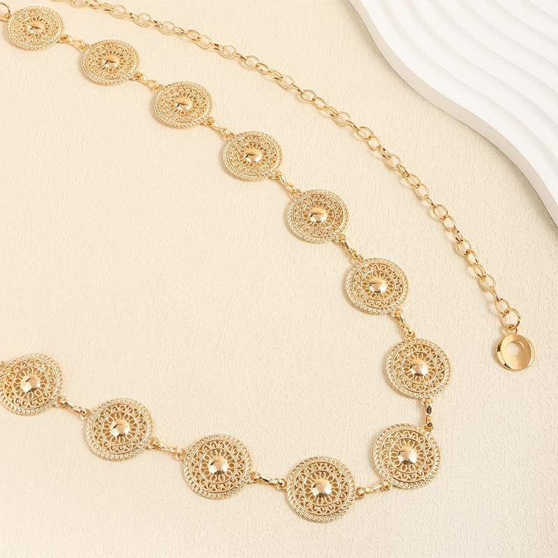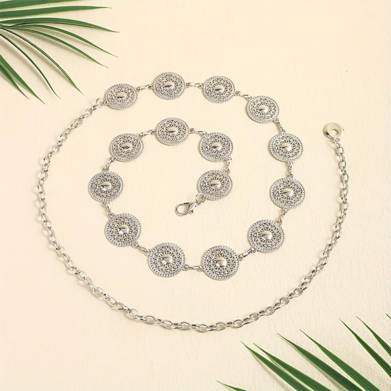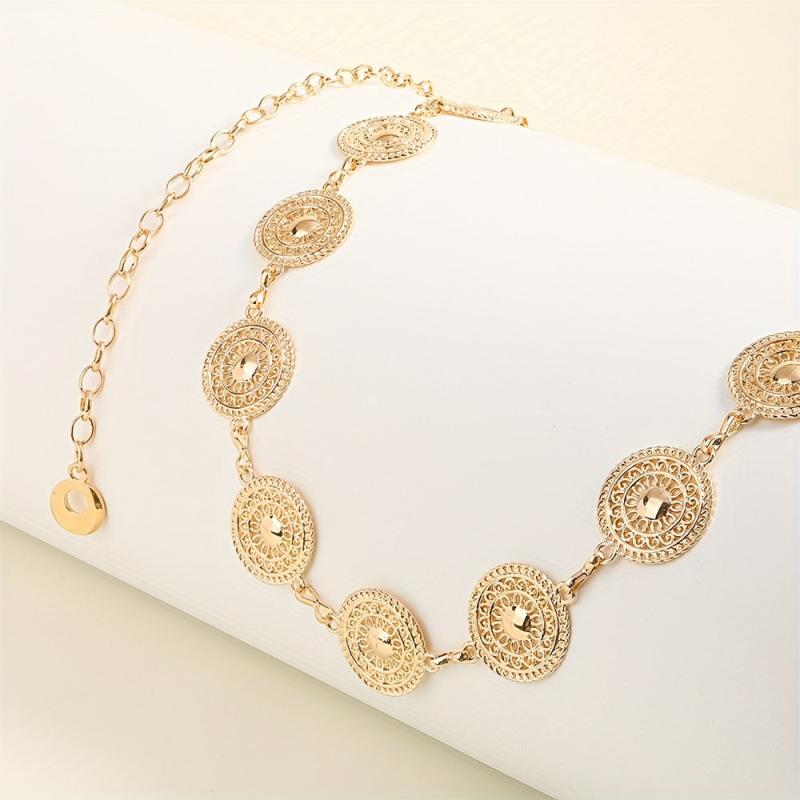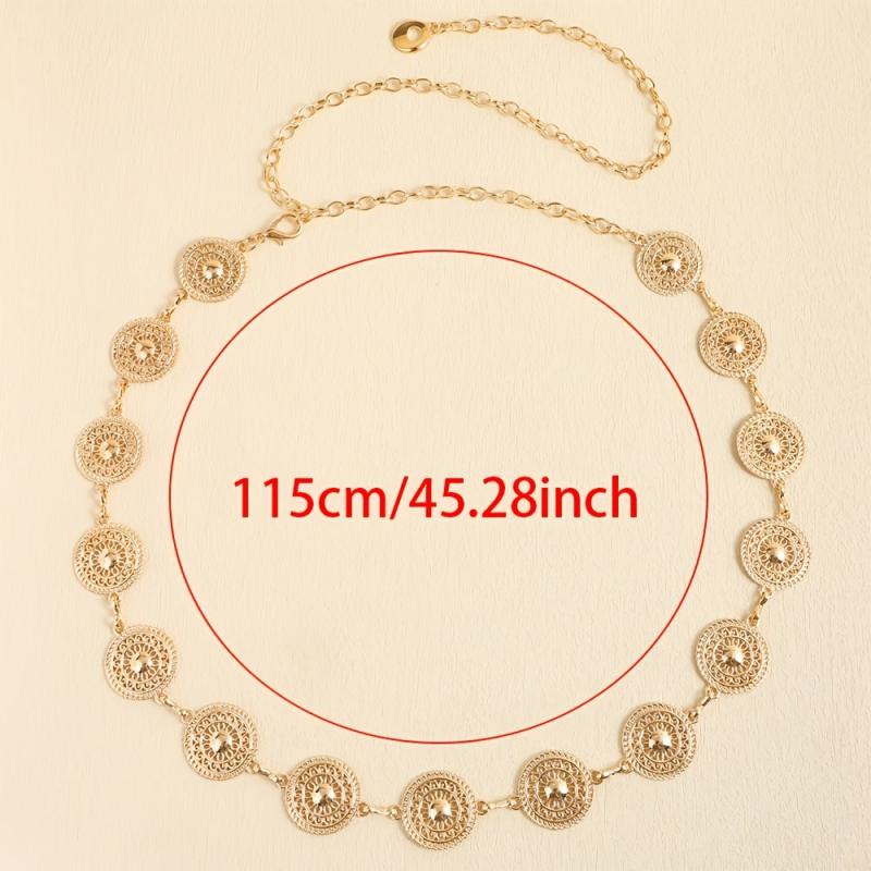 Elevate your outfit with this stylish Round Hollow Metal Belt. It's adjustable and designed with intricate decorative details.