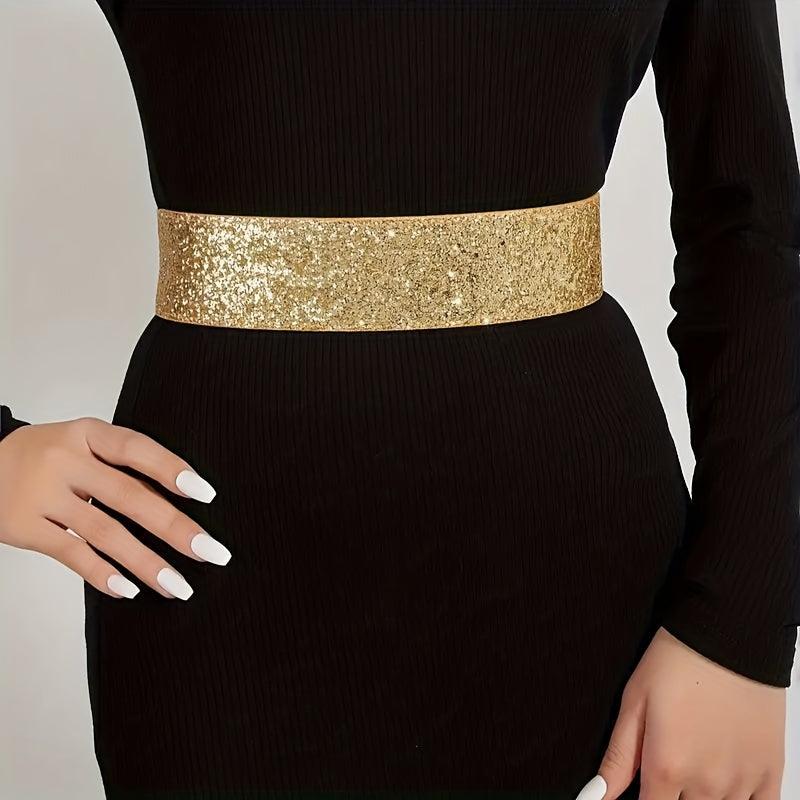 Add a touch of glamour to your night out or festive occasions with this sparkling sequin waistband. The stretchy design ensures a comfortable fit, making it perfect for dancing the night away. No buckle needed, just slip it on and shine!