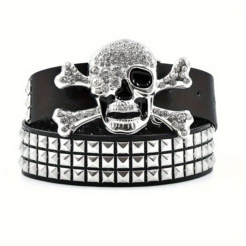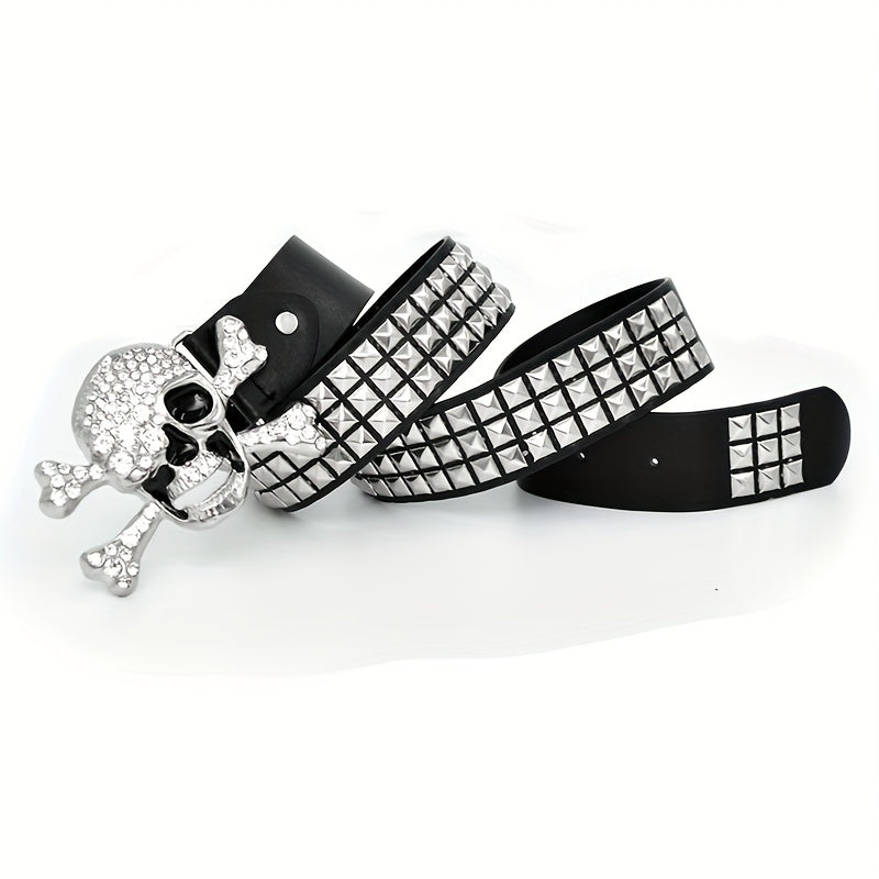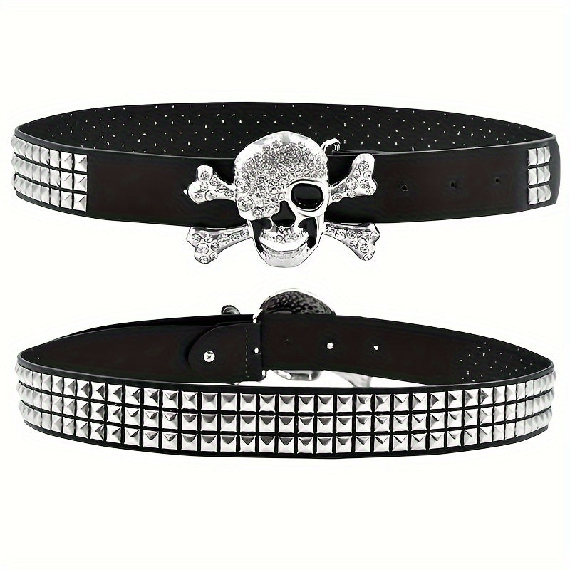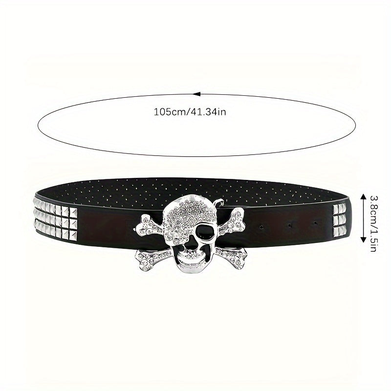 This punk style belt is made of PU leather with an alloy skull buckle and rivet-studded portrait embellishment. It is adjustable for adults over 15 years.