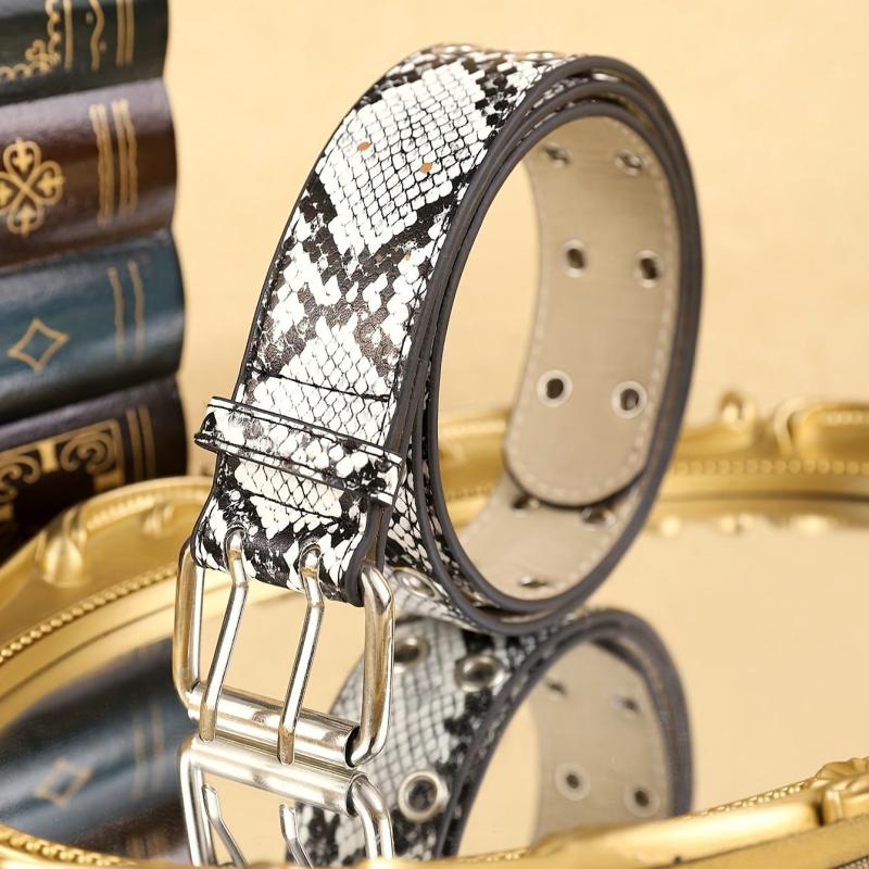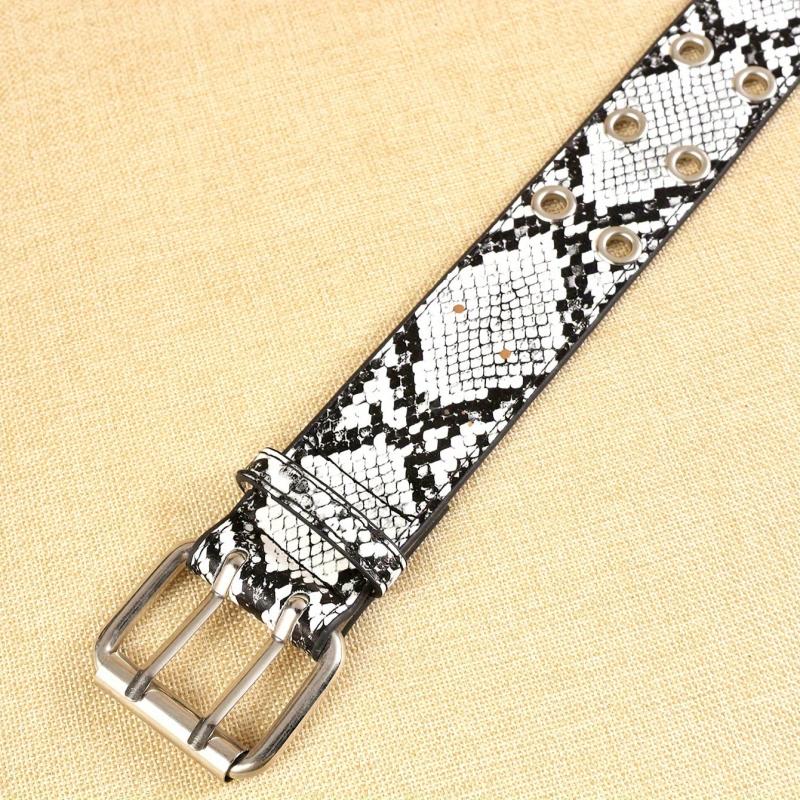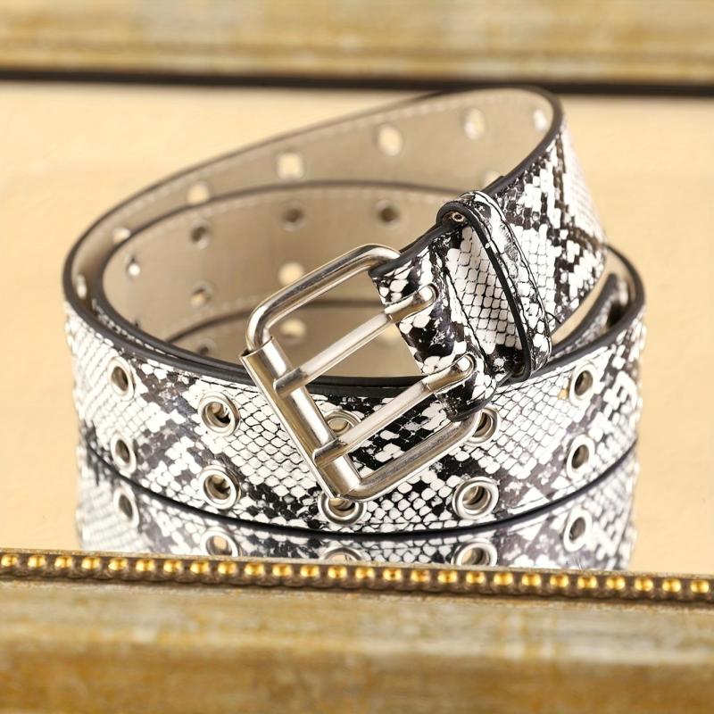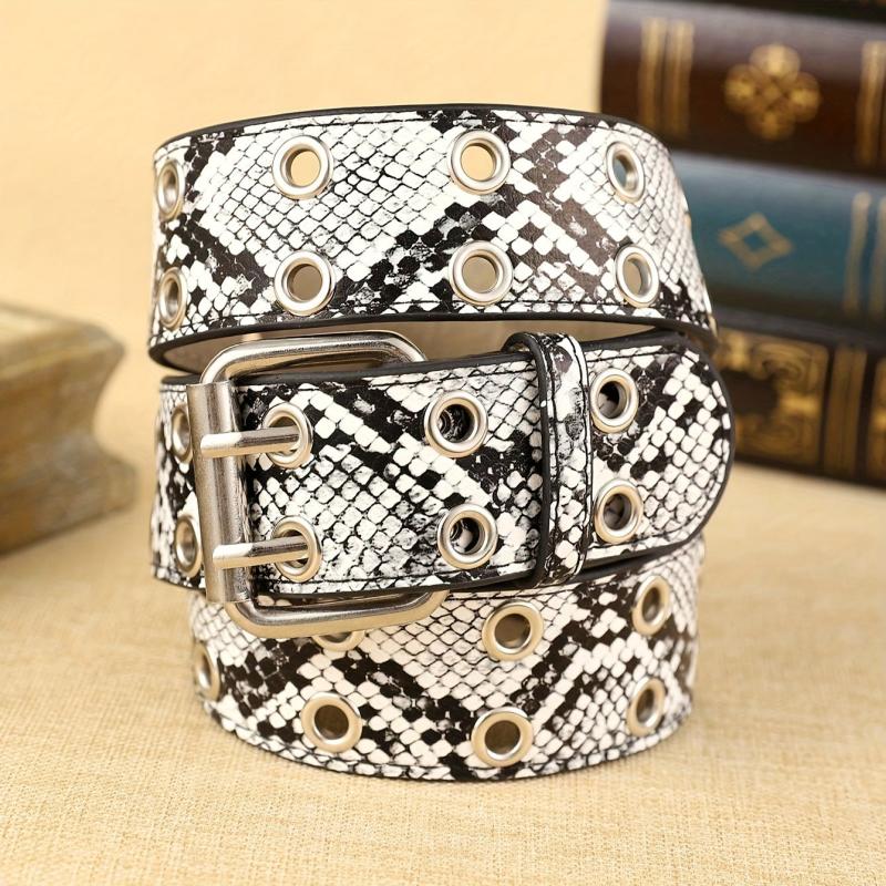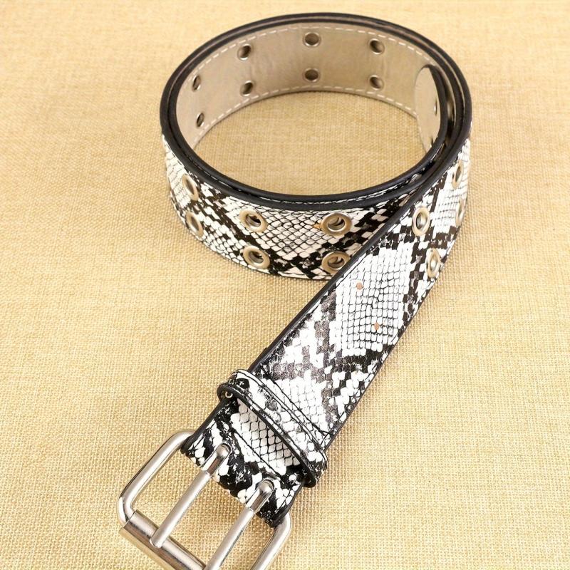 Add a touch of bohemian style to your outfit with this snake print double row buckle belt. Made of high-quality PU leather, this street accessory is perfect for casual wear. Please note that it is faux leather and not washable.