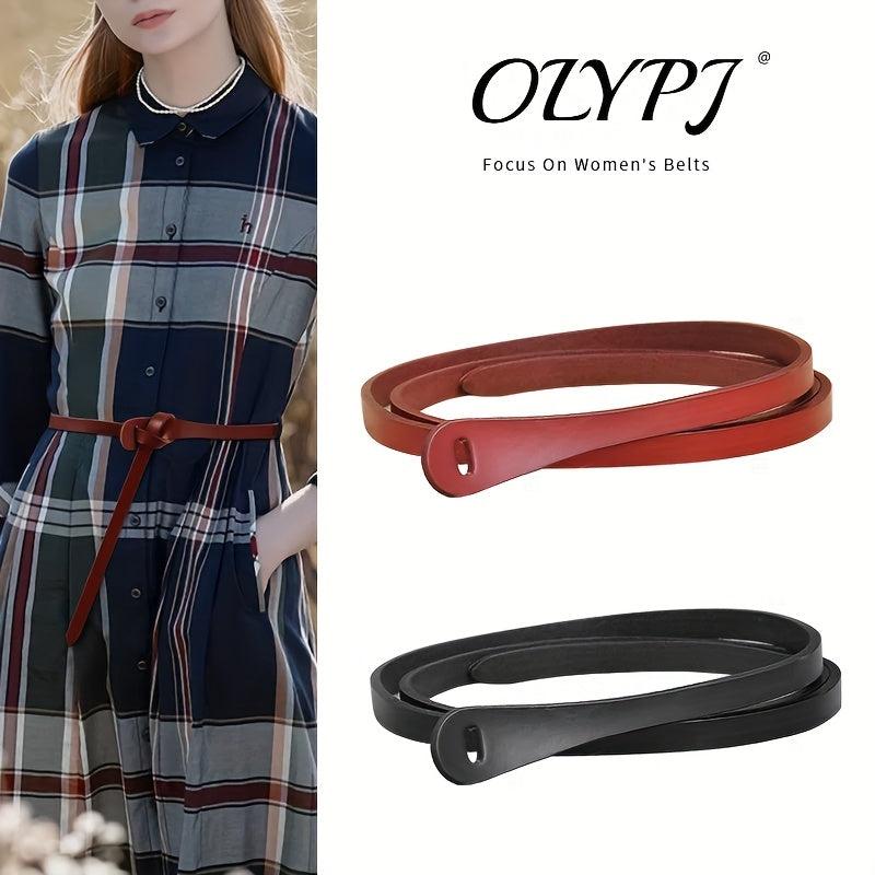 Elevate your casual or wedding attire with this lady women's leather belt. The soft and wide design features a decorative knot detail and a touch of red for added style.