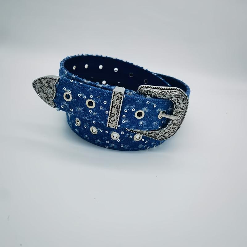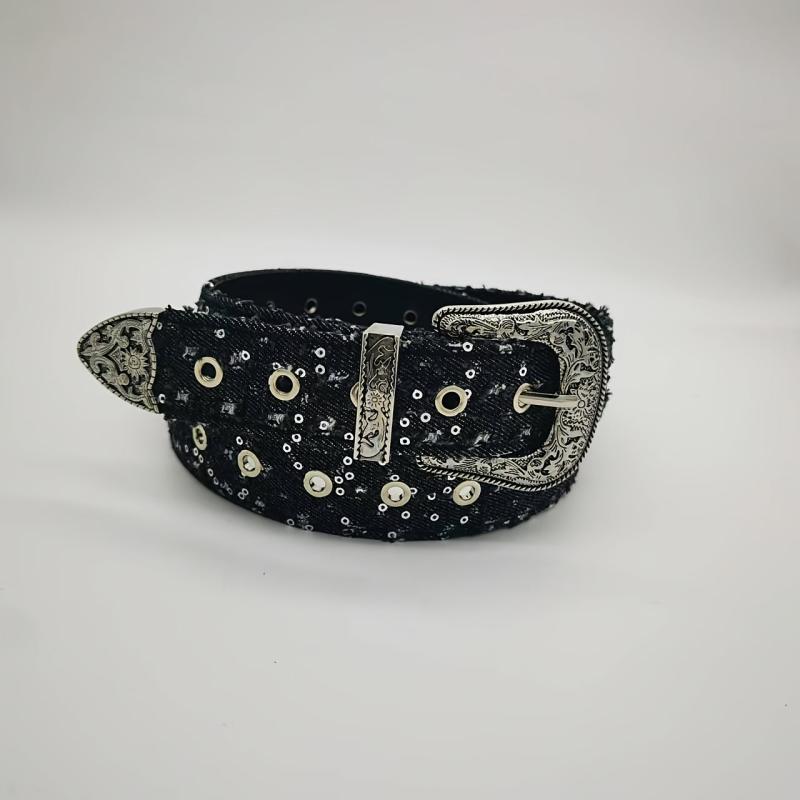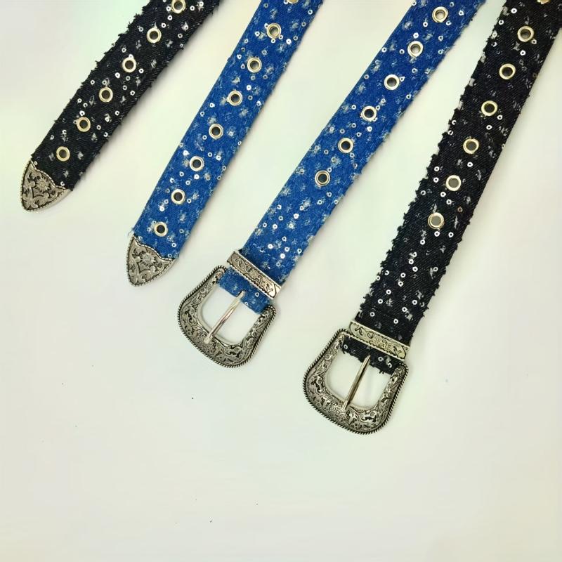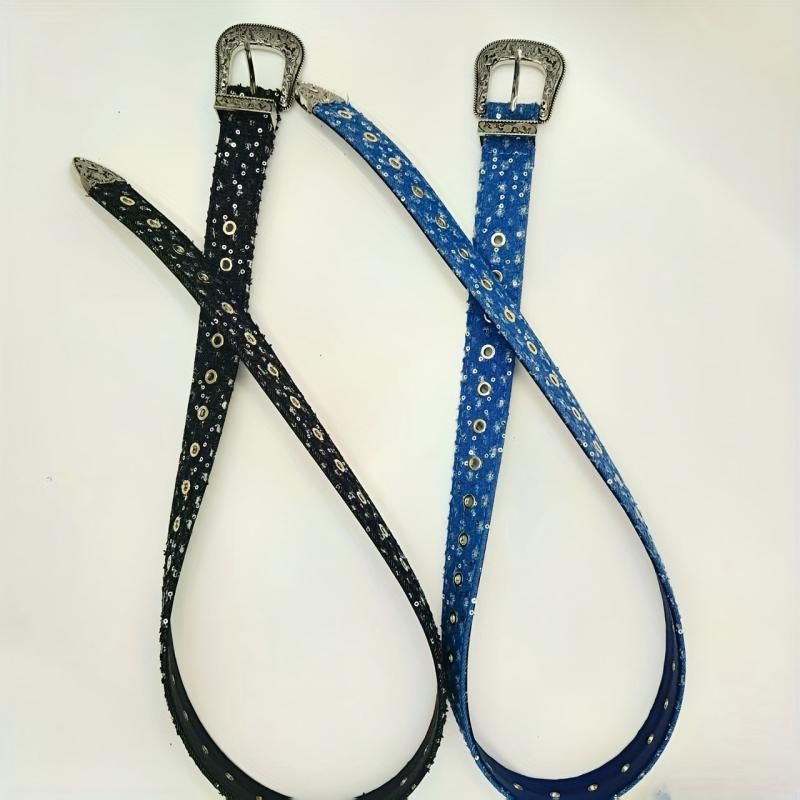 Enhance your casual attire with this stylish PU belt featuring sparkling embellishments. The adjustable non-slip iron buckle ensures a secure fit for jeans, dresses, and other outfits.