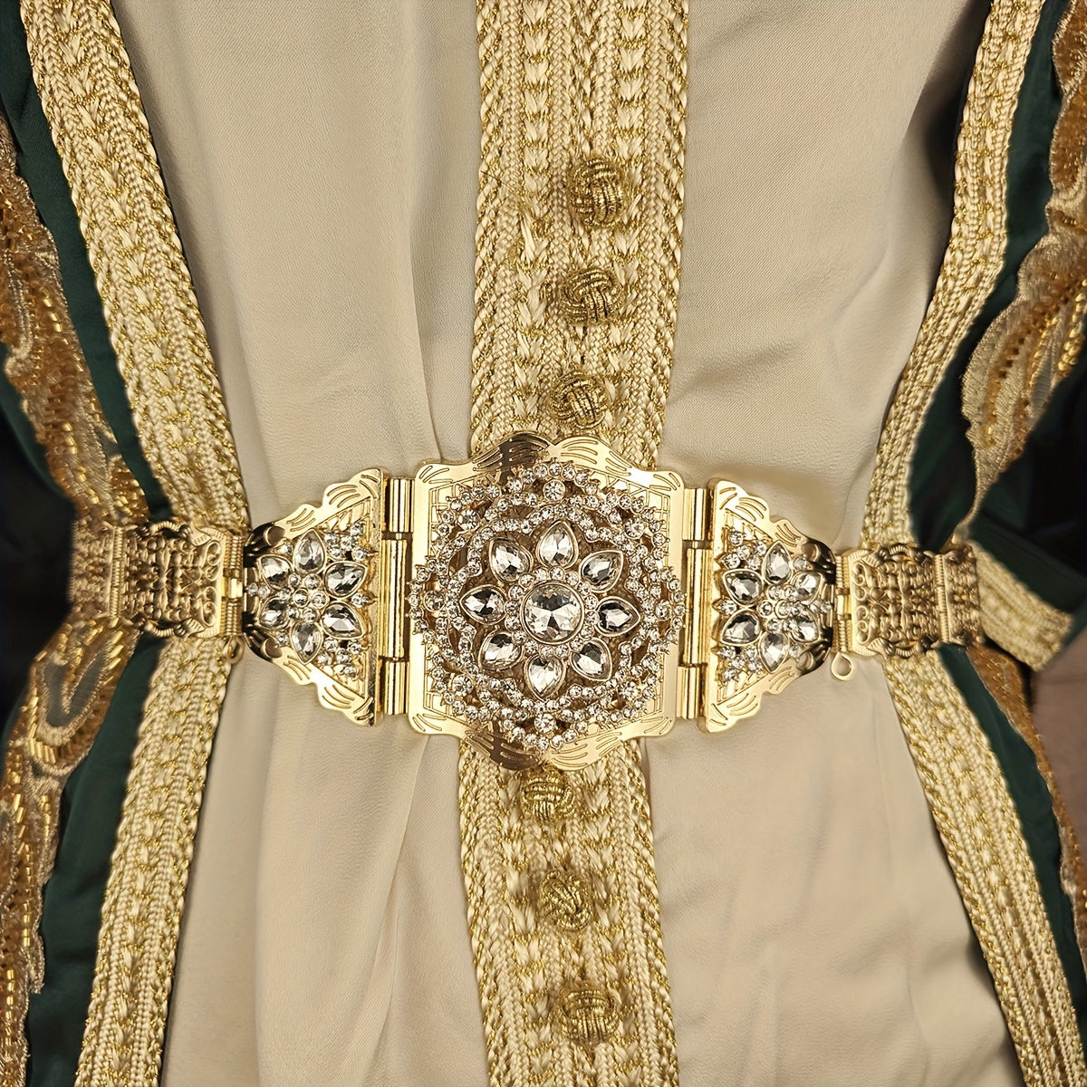 Add a touch of elegance to your wedding or party costume with this beautiful sparkling rhinestone Arabic style belt. Perfect for women who want to shine and stand out!