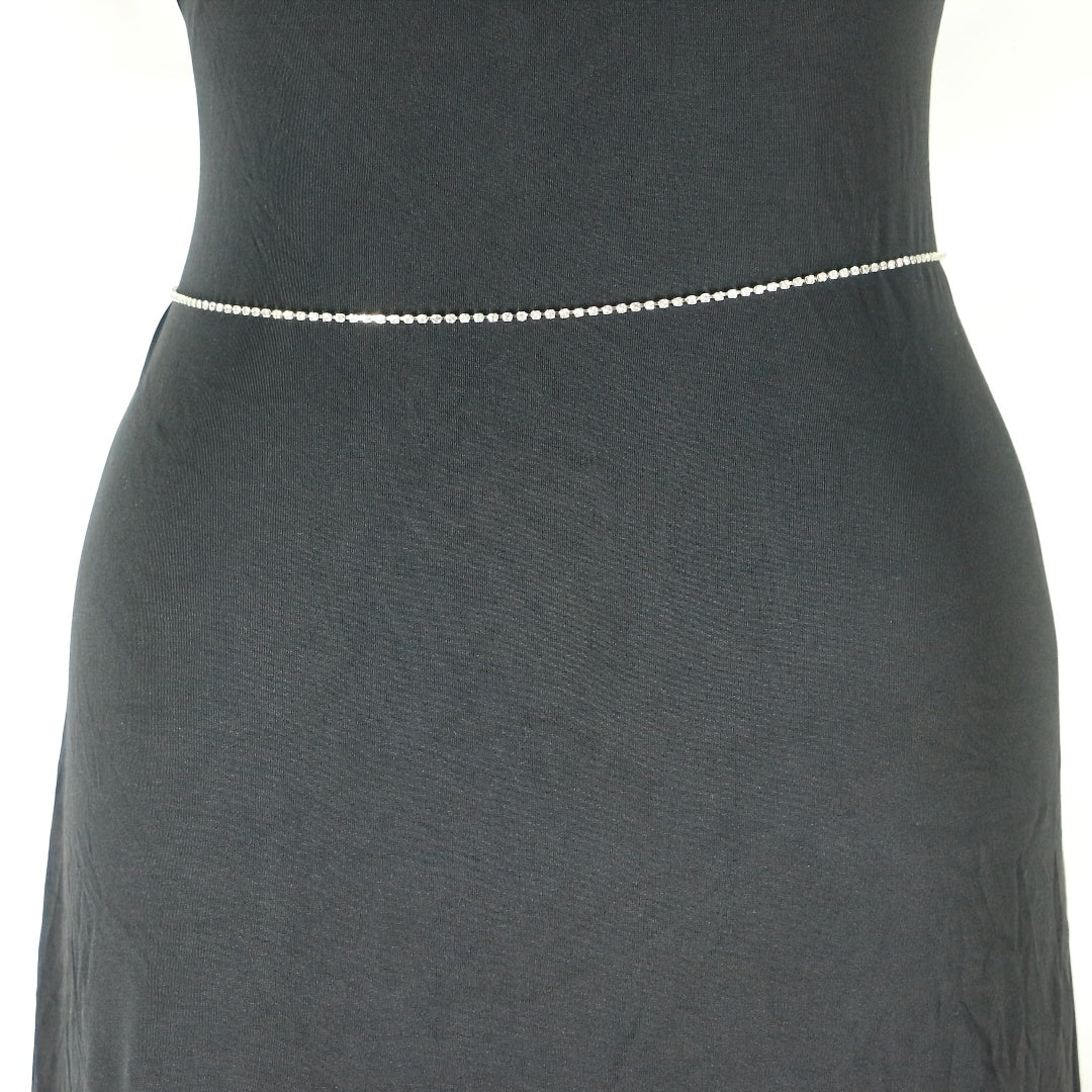 Make a statement with this elegant waist chain belt featuring sparkling rhinestones. Perfect accessory for any occasion.