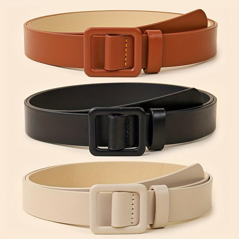 Stay stylish with this versatile and solid belt featuring a square buckle design. The no-needle decorative belt adds a fashionable touch to any outfit.