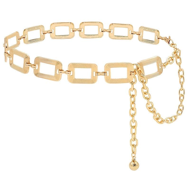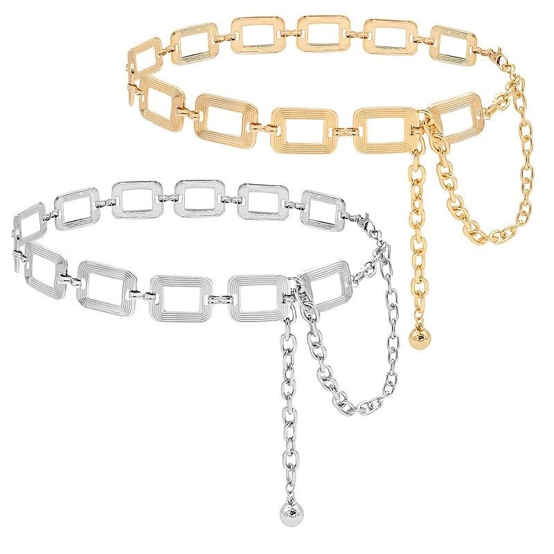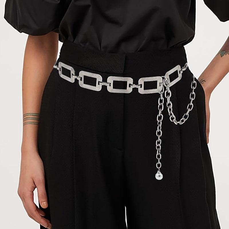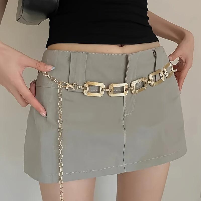 Add a touch of elegance to your summer dresses or jeans with this multifunctional hollow square metal belt. Perfect for Halloween or any occasion.