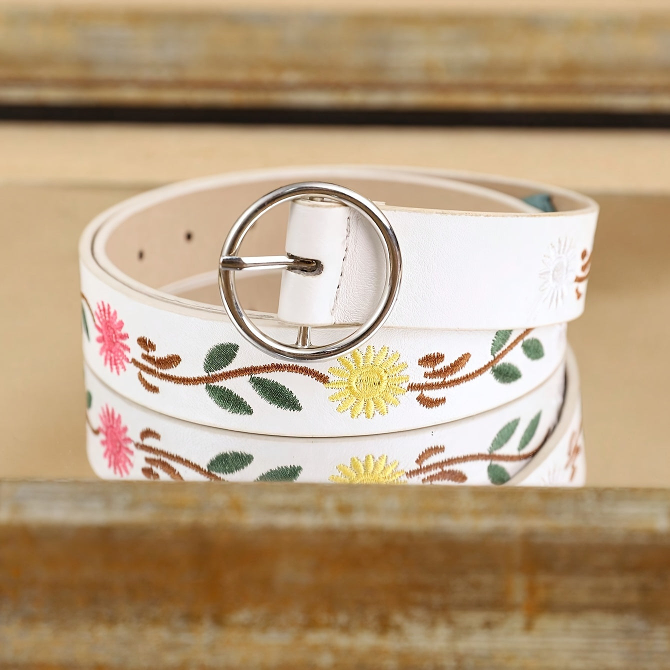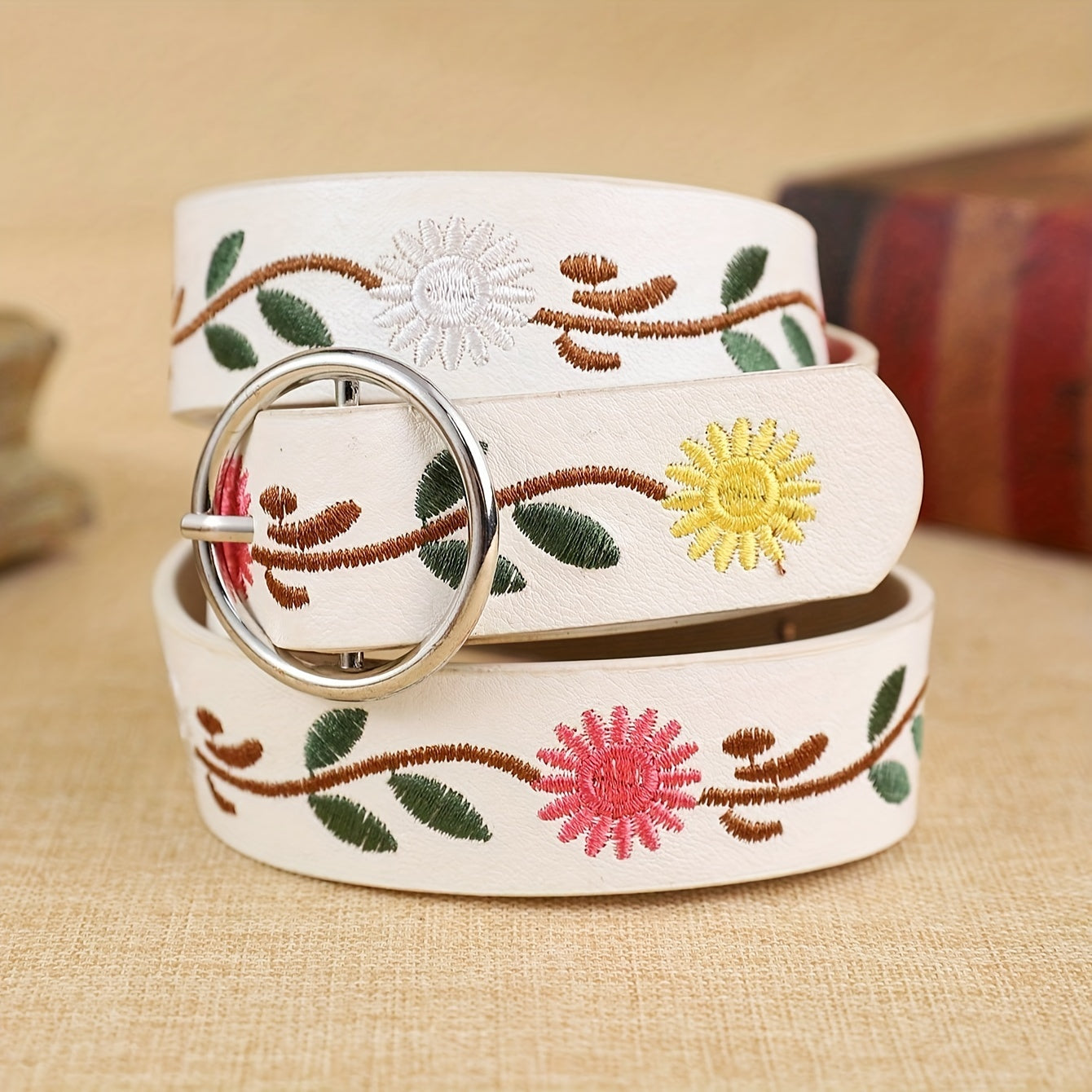 Elevate your outfit with this trendy PU belt featuring beautiful embroidered flowers. Perfect for evening dates or casual outings.