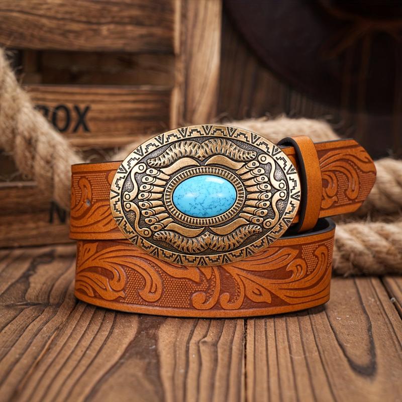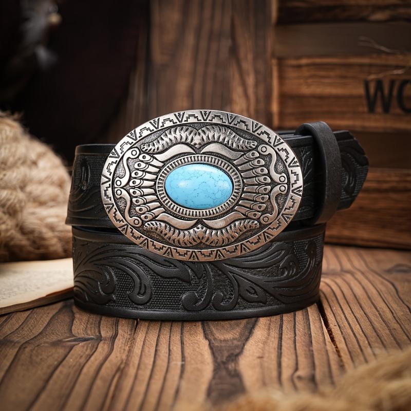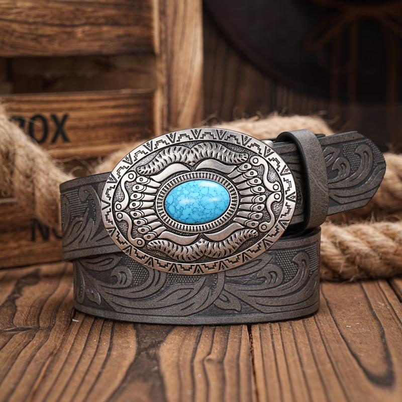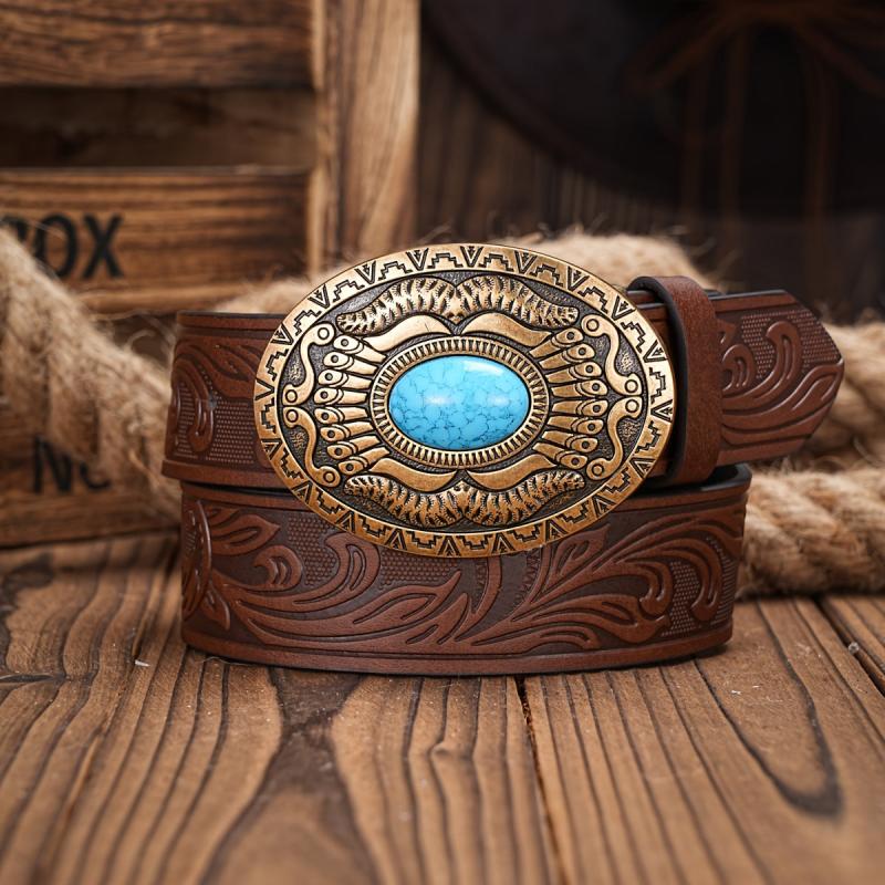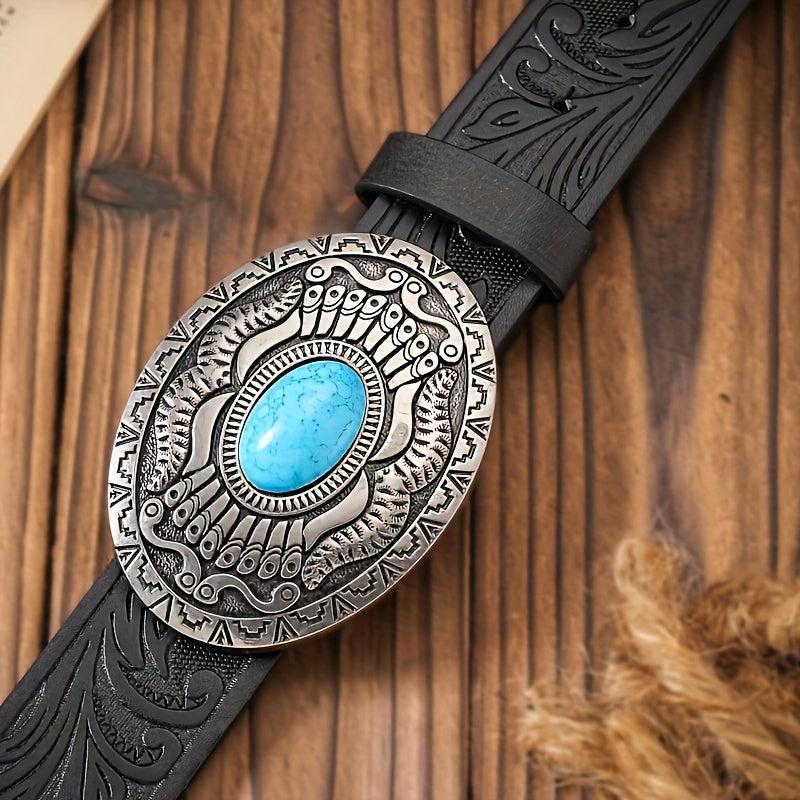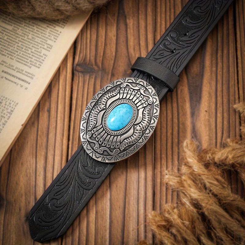 Elevate your style with this stunning synthetic gemstone buckle belt featuring intricate Phoenix Tail embossing. Perfect accessory for a touch of elegance.