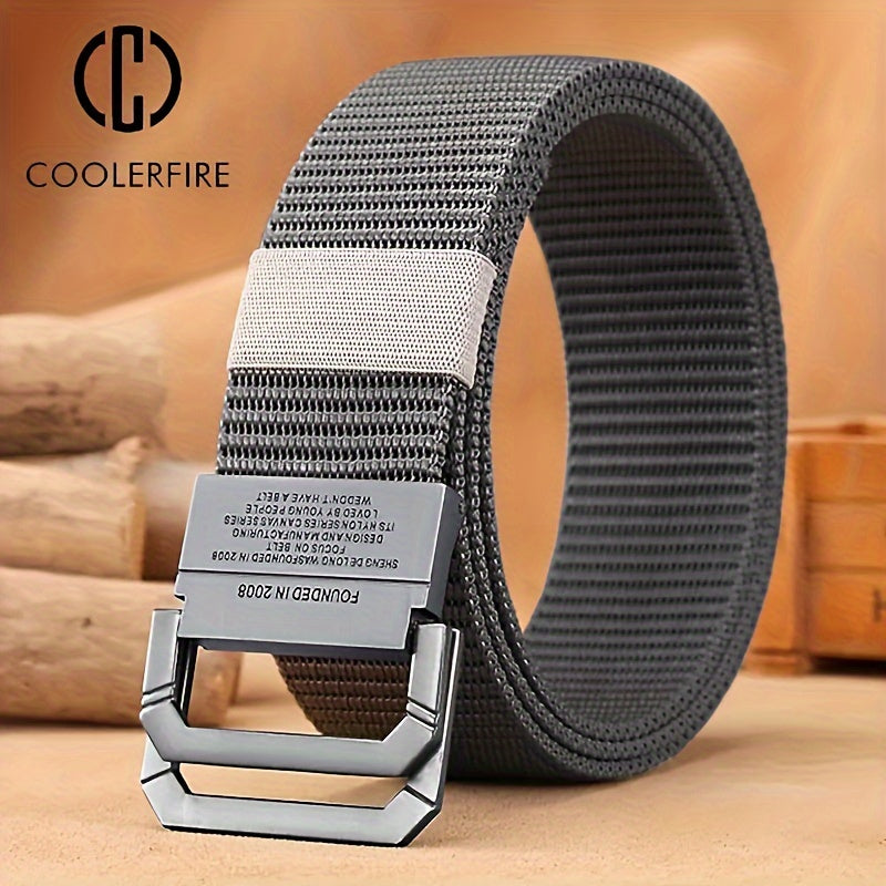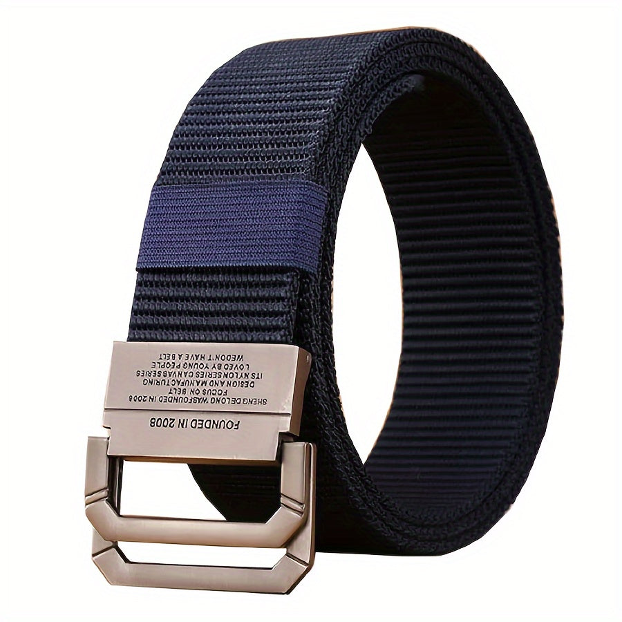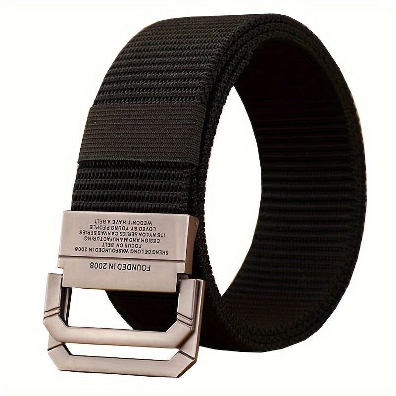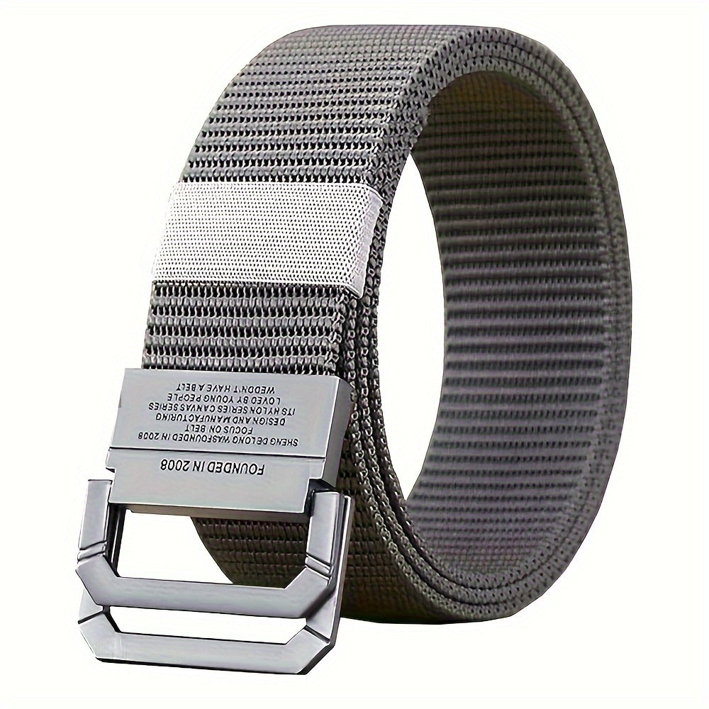 This tactical military style men's belt features a double buckle alloy buckle and durable canvas fabric. It is perfect for outdoor activities or casual wear.