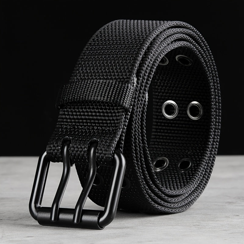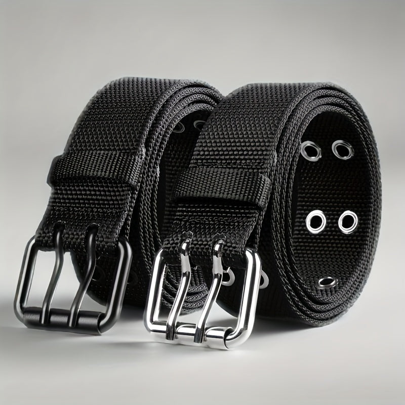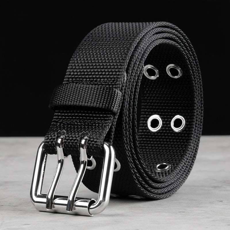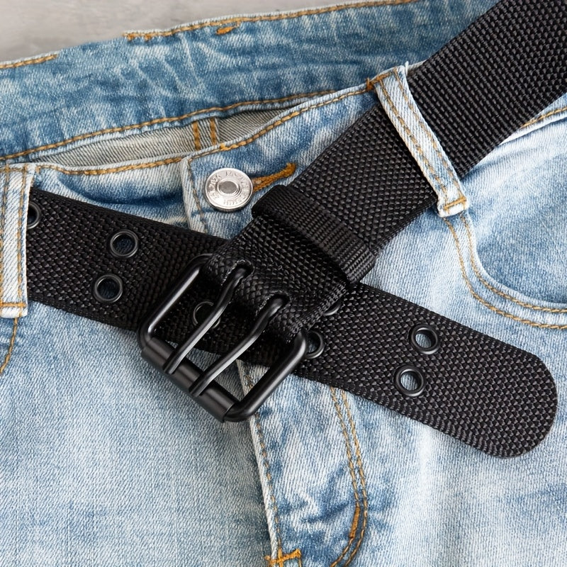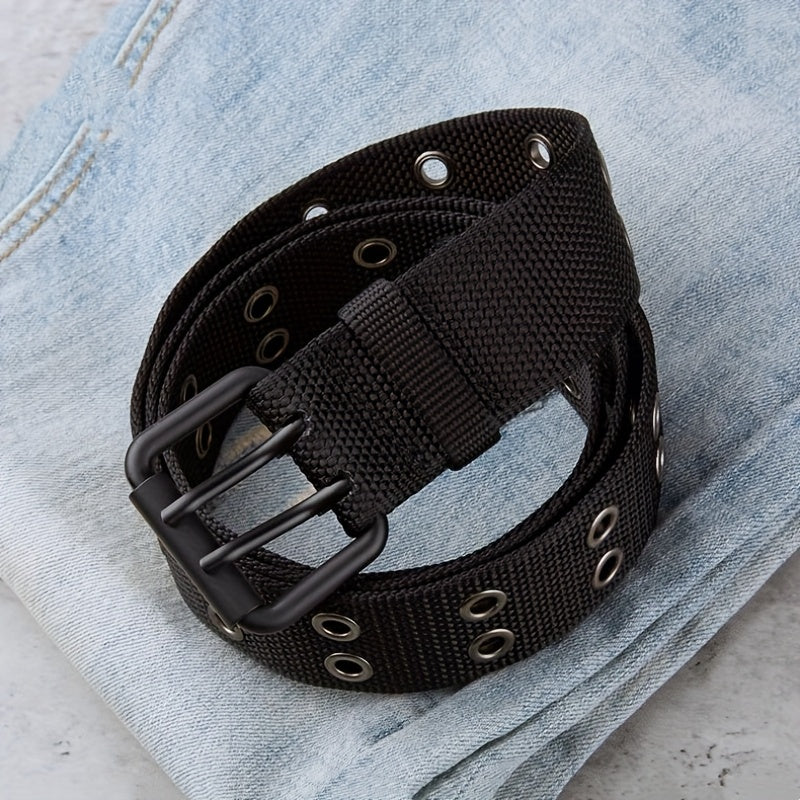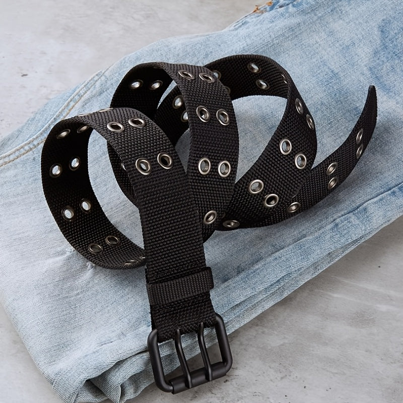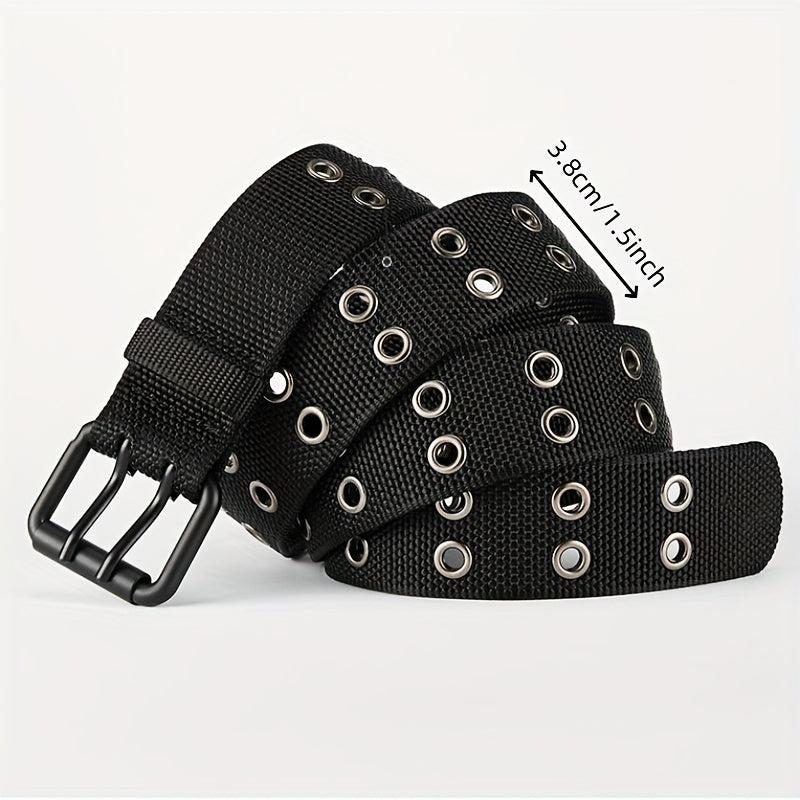This heavy duty canvas belt is perfect for a punk style look. The dual hole design with rivets adds a unique touch to your outfit. No need to punch holes, easy to wear for both men and women.