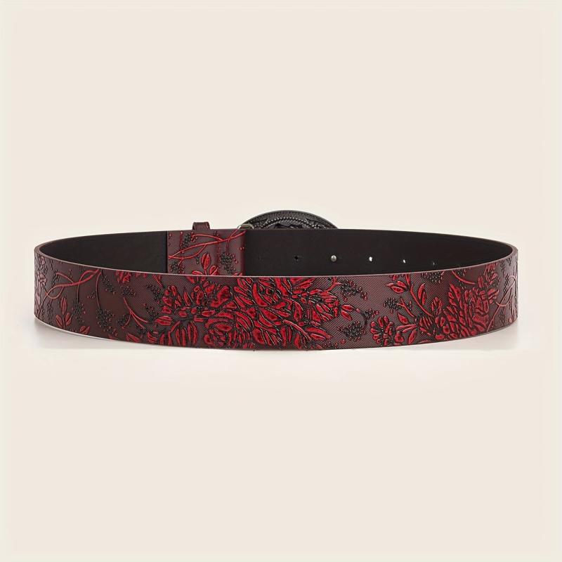 Add a bohemian touch to your outfits with this vintage-inspired studded faux leather belt. The embossed design and alloy buckle make it perfect for both casual and formal looks.