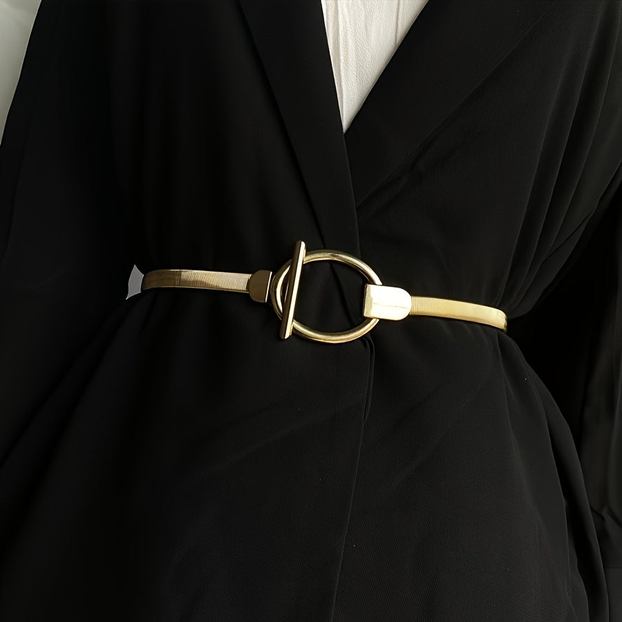 Add a touch of Bohemian style to your outfit with this vintage golden tone metal chain belt. Perfect for casual or dressy occasions, it adds a unique flair to your attire.