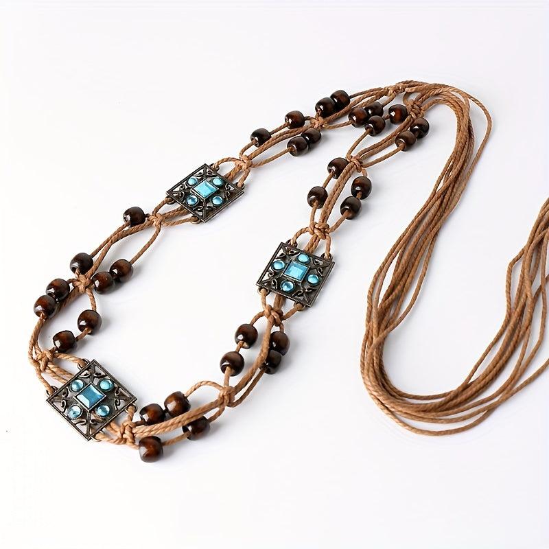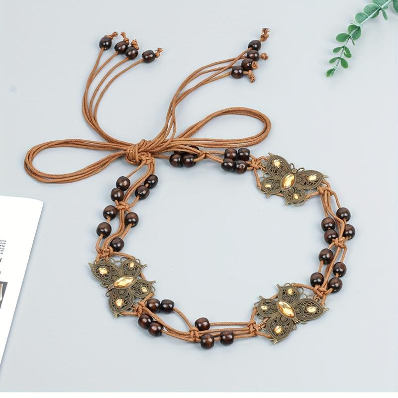 Add a touch of bohemian chic to your outfit with this vintage braided sash belt. Featuring wooden beads and a bowknot design, this waistband is the perfect Western waist chain decoration girdle for women.